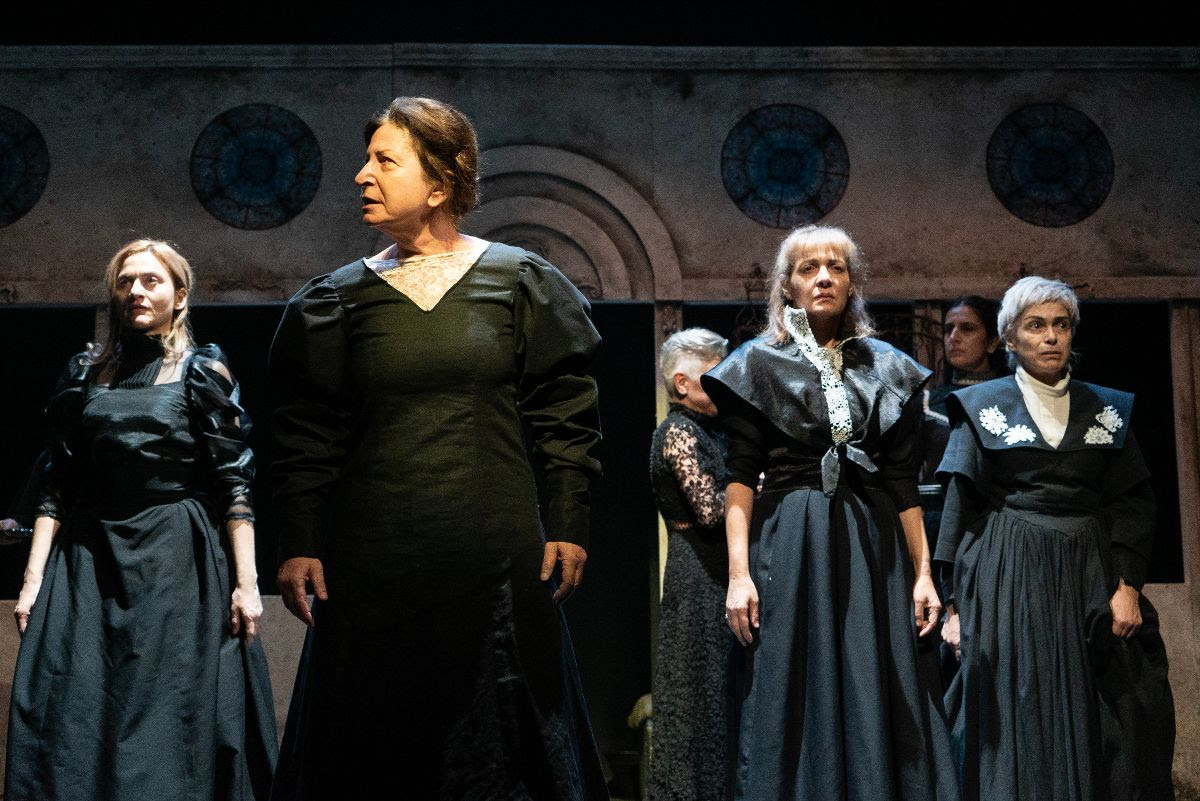 Όχι, δεν συναντώνται. Η σκηνοθεσία του Ένκε Φεζολλάρι, σύμφωνα με τη διασκευή που έχει κάνει μαζί με τη Ροδή Στεφανίδου, περιλαμβάνει πολλούς ρόλους. Κάποιες από εμάς, μέσα στην εξέλιξη της ιστορίας, παίζουμε και ανδρικούς.