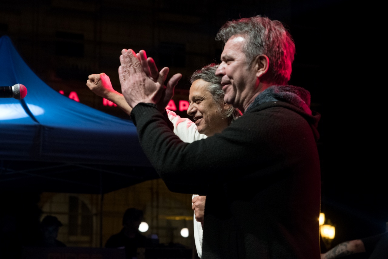 Αφροδίτη θα σου μιλήσω από την καρδιά μου πραγματικά. Υπάρχουν πολλές στιγμές που λιγοψυχώ. Στο λέω με πολύ μεγάλη ειλικρίνεια. Είναι στιγμές που θέλω να εξαφανιστώ από προσώπου γης. Ανθρώπινα. Με ενοχλεί που όλα για κάποιους είναι τόσο καλά. Αυτό δεν μπορεί να συμβαίνει, με ενοχλούν οι απολύτως πετυχημένοι. Κάτι άλλο συμβαίνει υπάρχει μια άλλου είδους παθογένεια. Το άσπρο χρειάζεται το μαύρο, η ευτυχία τη δυστυχία, η αγάπη το μίσος, το φως το σκοτάδι. Για να μπορέσει ακριβώς το ένα να προσδιορίσει και να ετεροπροσδιοριστεί από το άλλο. Έτσι είναι αυτή η ενέργεια. Λοιπόν, δεν μας παίρνει. Εγώ αυτό έχω να πω. Έχω φτάσει εδώ που έχω φτάσει με μια διαδρομή καθ’ όλα δύσκολη, αγαπώ τόσο πολύ την τέχνη μου που φτάνω στο σημείο να αξιολογώ ξανά και ξανά τα πράγματα. Και κάθε φορά που γονατίζω, κάθε φορά θα πω όχι, τώρα σήκω. Σήκω και προχώρα. Δεν γίνεται αλλιώς. Ο Ελύτης το είπε. «Ο άνθρωπος πεθαίνει όταν πεθάνουν τα όνειρά του». Δεν γίνεται να το αφήσουμε να συμβεί αυτό. Είναι άδικο για μας και δεν μας αξίζει. Το πιστεύω πολύ βαθιά μέσα μου αυτό. Μπορεί να φαίνεται απέλπιδα η προσπάθειά σου, για παράδειγμα στις Σκουριές. Όχι δεν είναι. Παράγει αισθητική, παράγει συντροφικότητα, παράγει αλληλεγγύη, παράγει συλλογικότητα, κόντρα στην εποχή της ατομικής ανέλιξης, του αμοραλισμού και των ηλίθιων αριβιστών. Δεν μπορούμε να εγκαταλείψουμε αυτά τα παιδιά που πηγαίνουν με τέτοια ευαισθησία και το αίσθημα της θυσίας και δένονται πάνω στα δέντρα, για να μην κοπούν αυτά τα δέντρα. Δεν μπορώ να δω κάτι άλλο, μπορεί να έχω εγώ θέμα!! Αλλά από ότι βλέπω είμαστε αρκετοί που έχουμε θέμα!