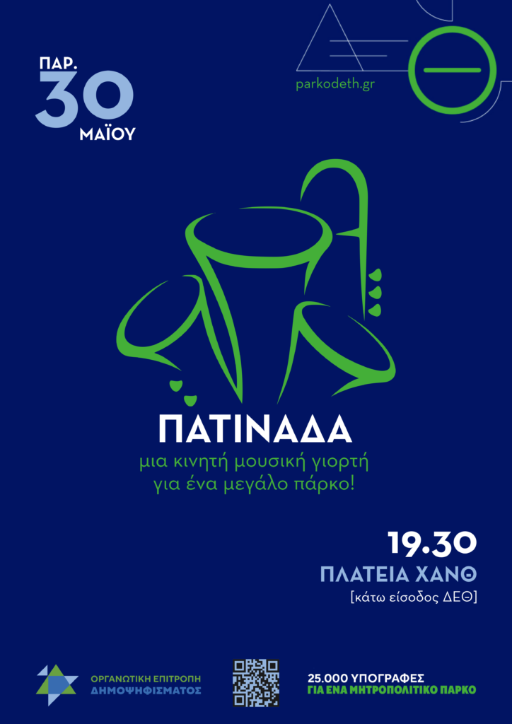 Απόψε, λίγο πριν νυχτώσει, όσοι βρεθούν στο κέντρο της πόλης θα πέσουν πάνω σε μια κινητή μουσική γιορτή. Στο πλαίσιο της καμπάνιας ενημέρωσης της κοινωνίας της πόλης, αλλά και της συλλογής υπογραφών για το αίτημα του δημοψηφίσματος, η Οργανωτική Επιτροπή Δημοψηφίσματος εγκαινιάζει μια σειρά καλοκαιρινών εξωστρεφών εκδηλώσεων. Οι μουσικοί της πόλης Θάνος Σταυρίδης, Χρήστος Τάσιος, Χάρης Ευαγγέλου, Δημήτρης Μπέικος, Δημήτρης Τσέλιος, Ράφος Γκέντζης, Φοίβος Αποστολίδης, Νίκος Χρυσούλης, Τάσος Γκέντζης, Ευτέρπη Τσιγάρα, Βάγια Καρακώστα, με τα χάλκινα και τα κρουστά τους, ενώνουν τις νότες τους στον αγώνα για ένα μεγάλο μητροπολιτικό πάρκο στην καρδιά της πόλης. Αξίζει να σημειωθεί ότι η συμμετοχή όλων των μουσικών είναι δωρεάν και εθελοντική, όπως άλλωστε και η συνεισφορά των εκατοντάδων ανθρώπων που οργανώνουν τη μεγάλη αυτή καμπάνια. Οι ίδιοι οι μουσικοί οργάνωσαν κι έστησαν το μεγάλο αυτό πανηγύρι, που θα ταξιδέψει στους δρόμους της πόλης, ξεκινώντας -συμβολικά- από την νότια πύλη της ΔΕΘ. Παράλληλα, οι εθελοντές κι οι εθελόντριες της καμπάνιας θα μοιράζουν ενημερωτικό υλικό και θα συγκεντρώνουν υπογραφές στο αίτημα για δημοψήφισμα. Τις επόμενες εβδομάδες, θα ακολουθήσουν και άλλες μικρές και μεγάλες εκδηλώσεις, όπως μια μεγάλη λαϊκή συναυλία στις 11 Ιουνίου, αλλά και ένα διήμερο εκδηλώσεων στις 23 -24 Ιουνίου. Ραντεβού απόψε στις 19:30 στη νότια πύλη της ΔΕΘ (πλατεία ΧΑΝΘ).
