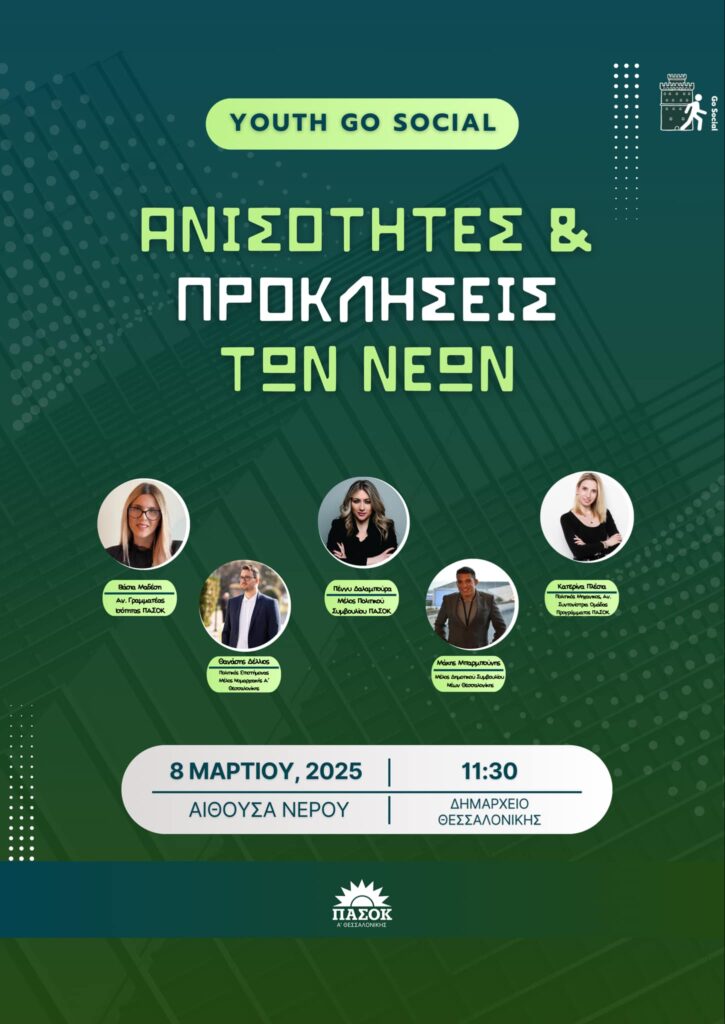 Η Σοσιαλιστική Νεολαία Θεσσαλονίκης μας προσκαλεί σε εκδήλωση με θέμα:« Ανισότητες και προκλήσεις των νέων» . Η εκδήλωση θα γίνει το Σάββατο 8 Μαρτίου – Παγκόσμια Ημέρα της Γυναίκας, στις 11:30 στο Δημαρχειακο Μέγαρο Θεσσαλονίκης (Αιθ. Νερού)