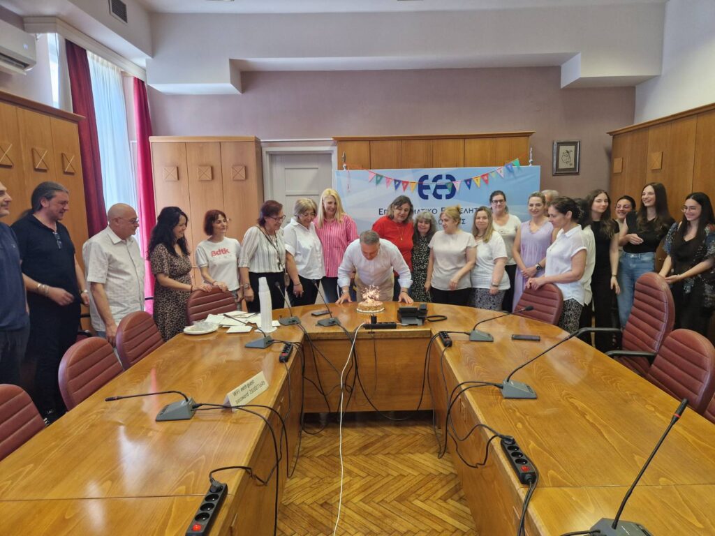 Πρώτα γενέθλια για τον Κυριάκο Μερελή στο Επαγγελματικό Επιμελητήριο Θεσσαλονίκης και συγκεκριμένα στο γραφείο του προέδρου. Εκεί όλοι οι συνεργάτες του τον υποδέχθηκαν με μια λαχταριστή καλοκαιρινή τούρτα.