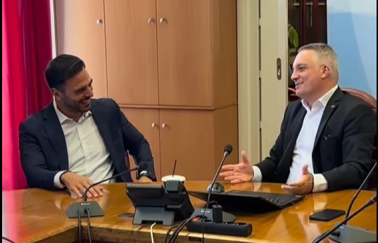 Από τον αεικίνητο στο τρεχαντήρι. Μετρήστε επισκέψεις. Χαλκιδική, Πέλλα, Θεσσαλονίκη, Λάρισα, ξανά Θεσσαλονίκη και βόλτα στην 89η ΔΕΘ. Κι όλα αυτά μέσα σε 3 μέρες. Ο λόγος για τον Μανώλη Χριστοδουλάκη. Ανάμεσα στις συναντήσεις του και αυτή με τον πρόεδρο του ΕΕΘ Κυριάκο Μερελή.