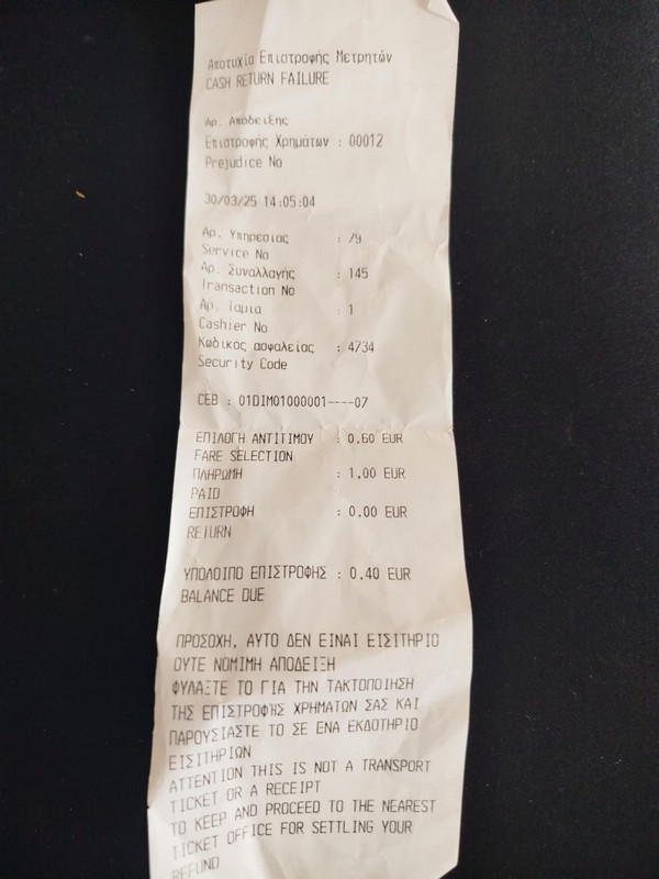 Καλό μήνα, κ. Λέων. Μιας και ειναι πρωταπριλιά να πω το εξής: Σαν ψέμα μου φαίνεται που στη Θεσσαλονίκη έχουμε μετρό κι ας ασκούμε κριτική για κάτι καθυστερήσεις, κάτι ακινητοποιήσεις κλπ κλπ. Αυτό, όμως, που με τίποτα δεν μπορώ να ξεπεράσω (αυτό κι αν μου φαίνεται σαν ψέμα) είναι ότι ενώ επιτέλους καταφέραμε τα… δύσκολα (δηλαδή να μπει στις ράγες το μετρό Θεσσαλονίκης μετά από 18 χρόνια από τη δημοπράτησή του), παλεύουμε ακόμη για τα.. εύκολ, δηλαδή τα εισιτήρια. Να τι εννοώ: φίλη της στήλης σε άπταιστα… «γαλλικά» (καταλαβαίνεις τι εννοώ) μου περιγράφει: Βάζω ένα ευρώ για να βγάλω ένα εισιτήριο στο μετρό και ενώ περιμένω τα ρέστα μου, βγαίνει ένα χαρτάκι (βλ.φωτο), σαν αποδεικτικό για την επιστροφή των 40 λεπτών που θα έπρεπε να πάρω πίσω. Πηγαίνω στην υπάλληλο, για τα 40 λεπτά και μου λέει: α, δεν γίνεται, πρέπει να πάτε στον σταθμό της Μαρτίου (και σε έναν ακόμη που δεν θυμάται η φίλη μας), για να γίνει η επιστροφή των χρημάτων”, Να μην στα πολυλογώ, κ. Λέων, η φίλη μου δεν ήθελε να πάει για 40 λεπτά μέχρι τη Μαρτίου και μάλιστα σε συγκεκριμένη ώρα για να παραλάβει τα ρέστα της. Ωστόσο, επειδή την έπιασαν τα νεύρα της (“μια ζωή κορόιδα, ε, όχι, φτάνει) πήγε μέχρι τη Μαρτίου και μου στέλνει το εξής μήνυμα: «Όχι μόνο πήγα, αλλά για τα 40 λεπτά, μου ζήτησαν τηλέφωνο και ονοματεπώνυμο! Μίλησα κι εκεί…. γαλλικά, κι έφυγα»…