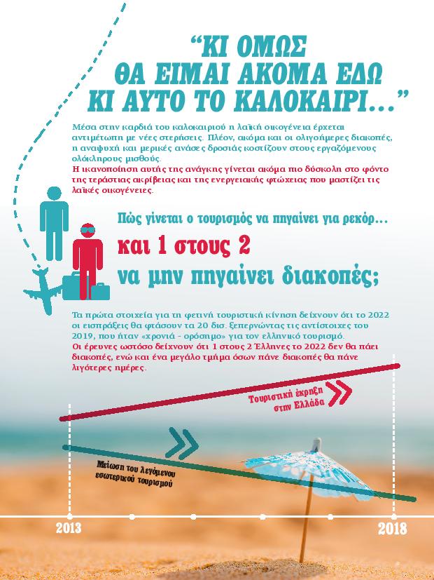 Την ώρα που το 2022 οι εισπράξεις από τον τουρισμό θα φτάσουν τα 20 δις ευρώ τα στοιχεία δείχνουν ότι 1 στους 2 Έλληνες το 2022 δεν θα πάει διακοπές.