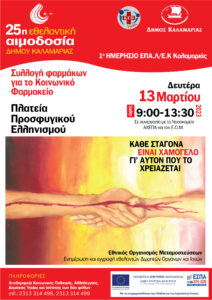 Στο σημείο θα γίνεται συλλογή φαρμάκων για την ενίσχυση του Κοινωνικού Φαρμακείου, ενώ όποιος επιθυμεί θα έχει την ευκαιρία μετά από ενημέρωση να γίνει δότης μυελού των οστών.