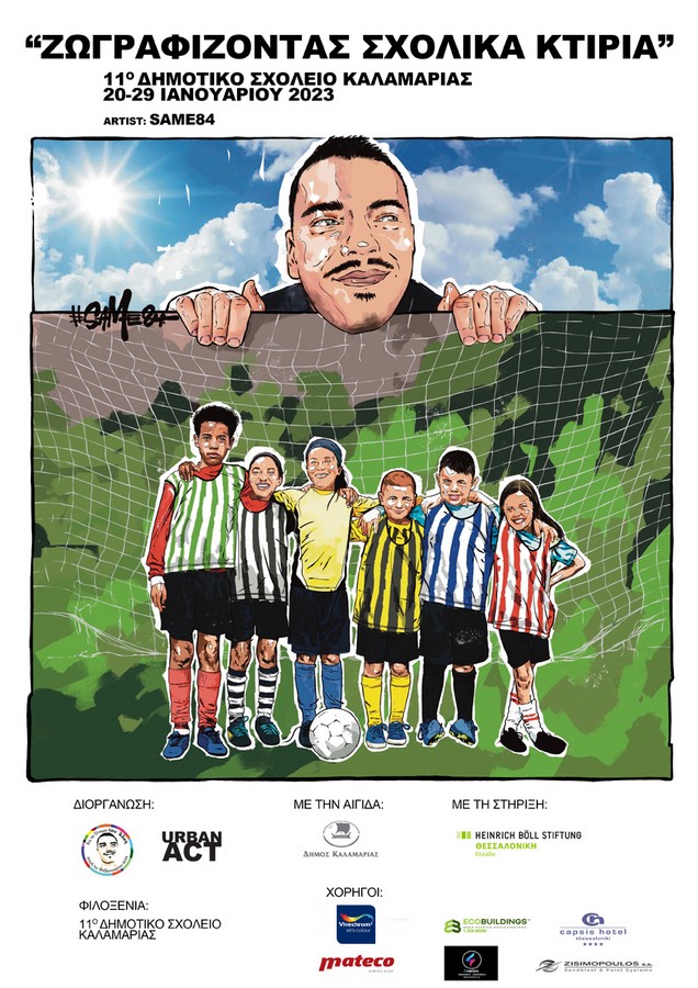 O SAME84 υλοποίησε την πρώτη μεγάλη τοιχογραφία εθελοντικά, στο 11ο Δημοτικό Σχολείο Καλαμαριάς, με την συνεργασία της Δ/νσης του σχολείου.
