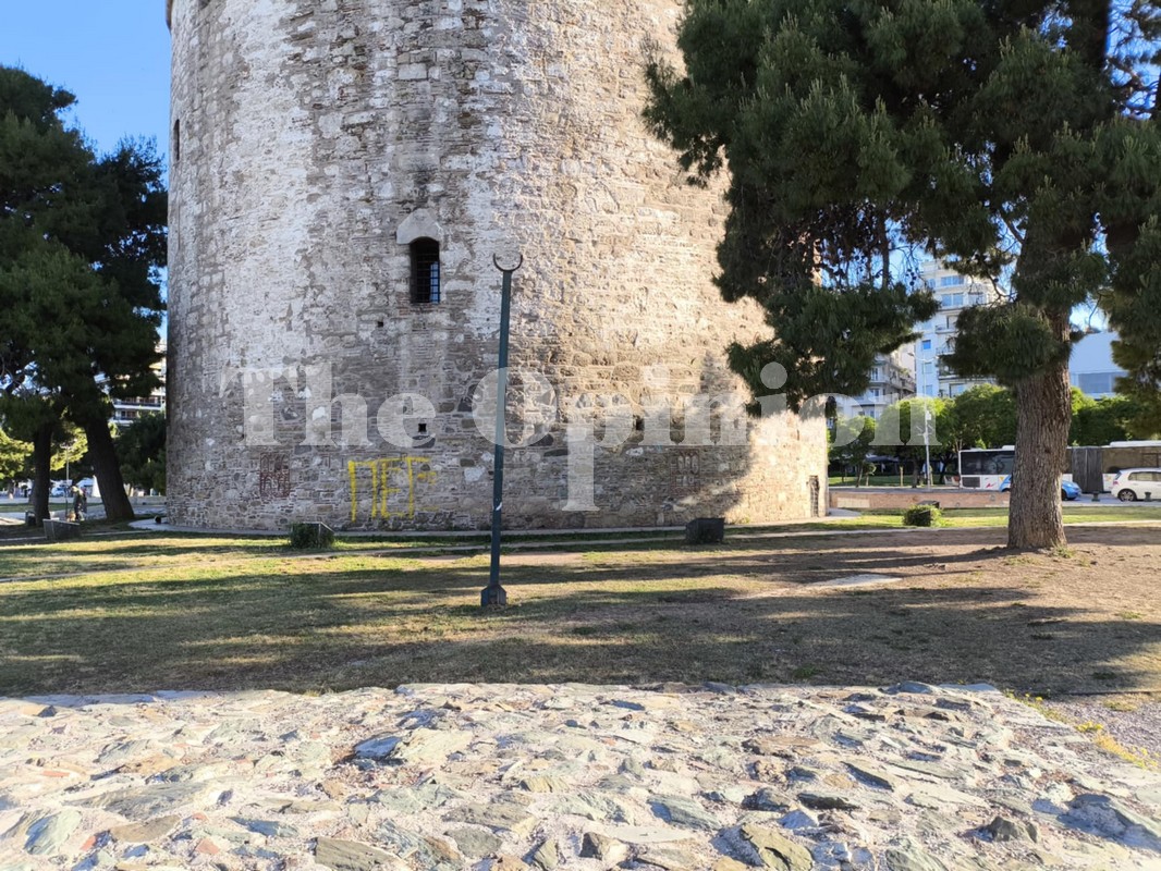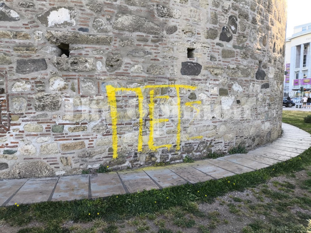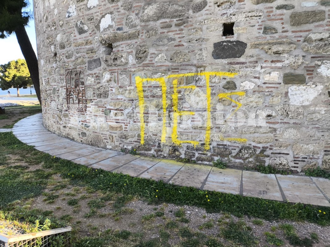 Ποικίλα σχόλια και αντιδράσεις προκαλεί η αναγραφή συνθήματος πάνω στο χαρακτηριστικό τοπόσημο της Θεσσαλονίκης, από αγνώστους. Τέσσερα γράμματα έχουν αναγραφεί με σπρέι πάνω στο μνημείο που «στέκεται» εκεί από τον 15ο αιώνα, μαρτυρώντας την μακραίωνη ιστορία της πόλης.