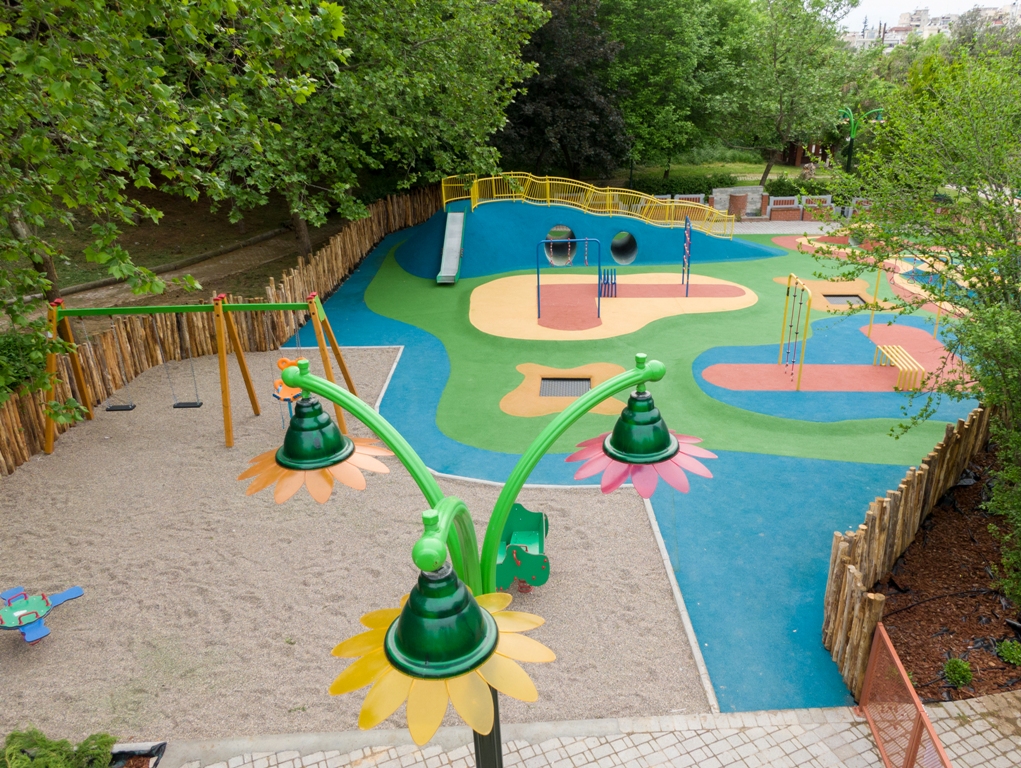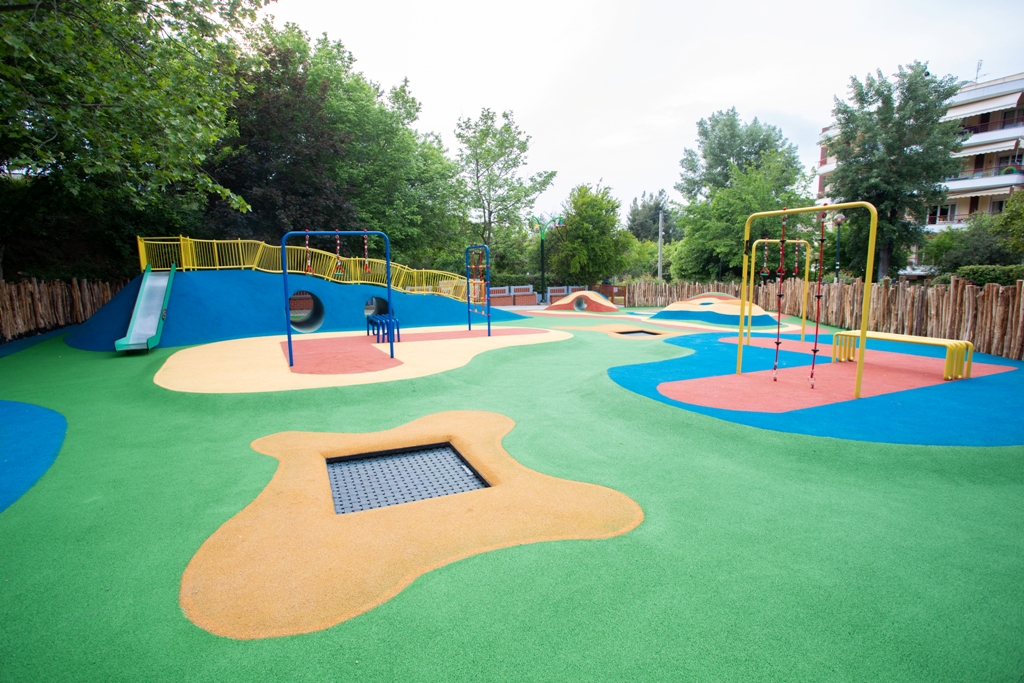Η Διεύθυνση Τεχνικών Υπηρεσιών φρόντισε να διαμορφωθεί ένας ελκυστικός τόπος αναψυχής, ο οποίος ξεχωρίζει κυρίως λόγω της προνομιακής του θέσης μέσα στο φυσικό περιβάλλον, δίπλα σε δέντρα και θάμνους, με σήμα κατατεθέν τους πολύχρωμους λόφους και με σειρά πλεονεκτημάτων όπως τα φιλικά προς το περιβάλλον υλικά, τα δάπεδα ασφαλείας που απορροφούν τους κραδασμούς στις περιπτώσεις πτώσης των παιδιών, τα ασφαλή, πιστοποιημένα και σύγχρονα ολοκαίνουργια όργανα – παιχνίδια που ενθαρρύνουν τη φαντασία των χρηστών και θα λατρέψουν τα παιδιά προσχολικής ηλικίας και οι έφηβοι.