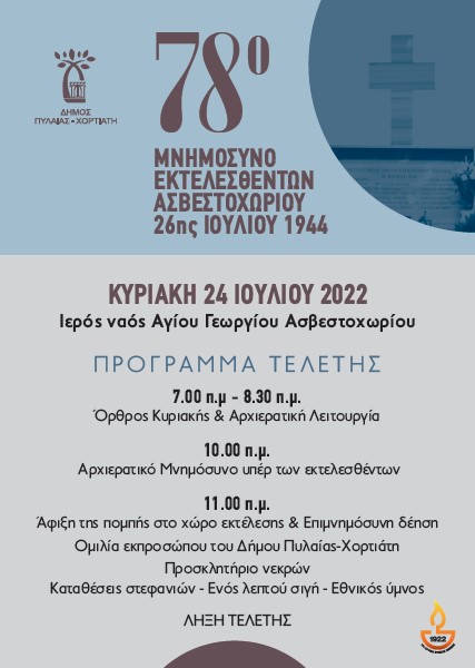 Δεν ξεχνά τους είκοσι ανθρώπους που εκτελέσθηκαν από τα γερμανικά στρατεύματα κατοχής και τους συνεργάτες τους, την 26η Ιουλίου του 1944 ο δήμος Πυλαίας –Χορτιάτη.