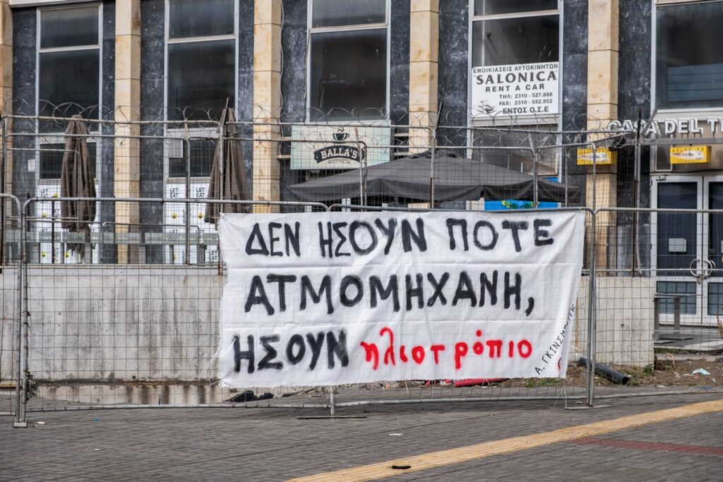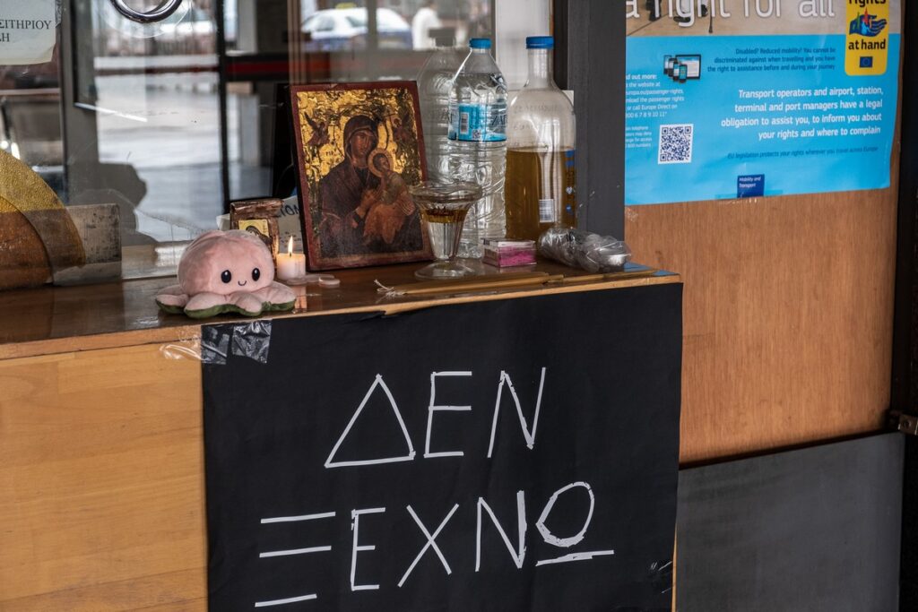 Ξεχωρίζει το μεγάλο μήνυμα “ΔΕΝ ΞΕΧΝΩ”. Ενώ ένα ακόμα γράφει «Για τους συναδέλφους και τις συναδέλφισσες που χάθηκαν τόσο άδικα στα Τέμπη. Δεν σας ξεχνάμε”.