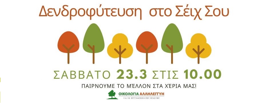 «Την 21η Μαρτίου, πρώτη ημέρα της άνοιξης, τελειώνει η φυτευτική περίοδος και η «Οικολογία – Αλληλεγγύη» ολοκληρώνει τη δενδροφύτευση στο Σέιχ Σου, που ξεκίνησε τον Νοέμβριο, στην περιοχή που δεν υπήρξε φυσική αναγέννηση, κοντά στο εκκλησάκι του Αγ. Βασιλείου» αναφέρεται αρχικά στην σχετική ανακοίνωση.