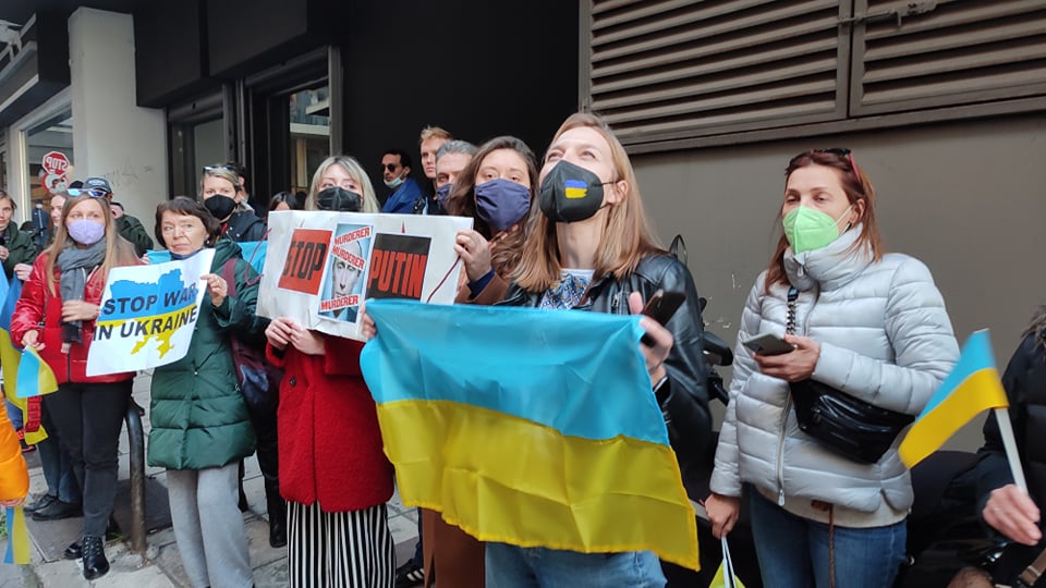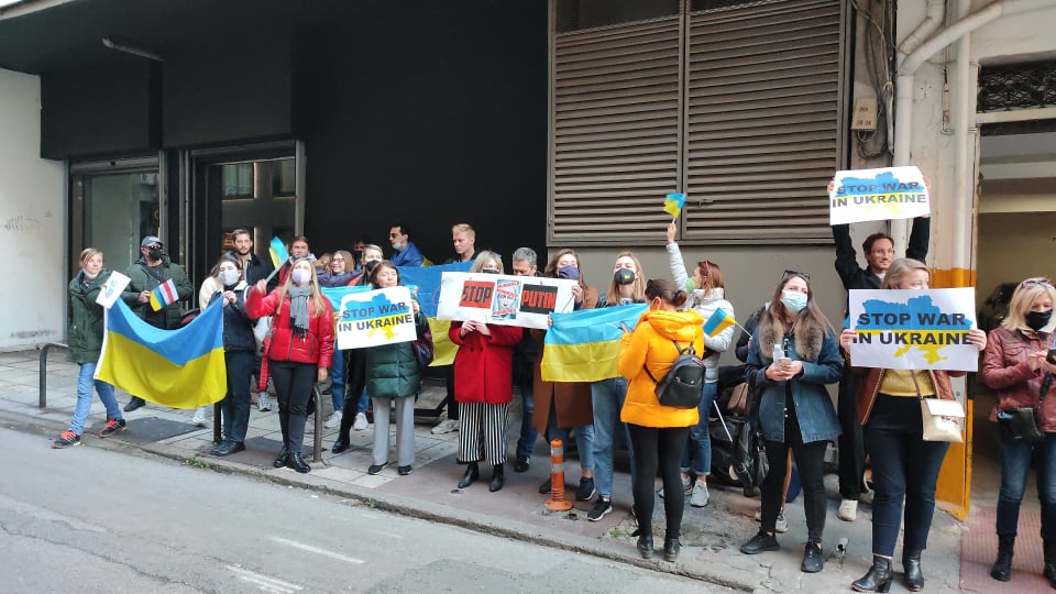 Διαμαρτυρία πραγματοποιείται αυτή την ώρα από Ουκρανούς έξω από το Ρωσικό προξενείο στη Θεσσαλονίκη.