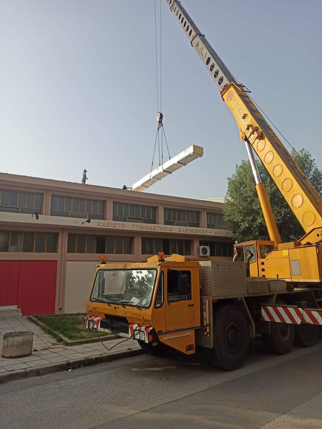 Με πόρους από το πρόγραμμα «Φιλόδημος» και τη συνεργασία των Αντιδημαρχιών, Τεχνικών Υπηρεσιών και Παιδείας, αντικαταστάθηκαν οι στέγες στα δύο γυμναστήρια και συγκεκριμένα απομακρύνθηκαν οι παλιές και διαβρωμένες λαμαρίνες από την οροφή των δύο κτιρίων και στη θέση τους τοποθετήθηκαν πάνελ νέου τύπου, τα οποία εξασφαλίζουν τη στεγανότητα και τη μόνωσή τους.