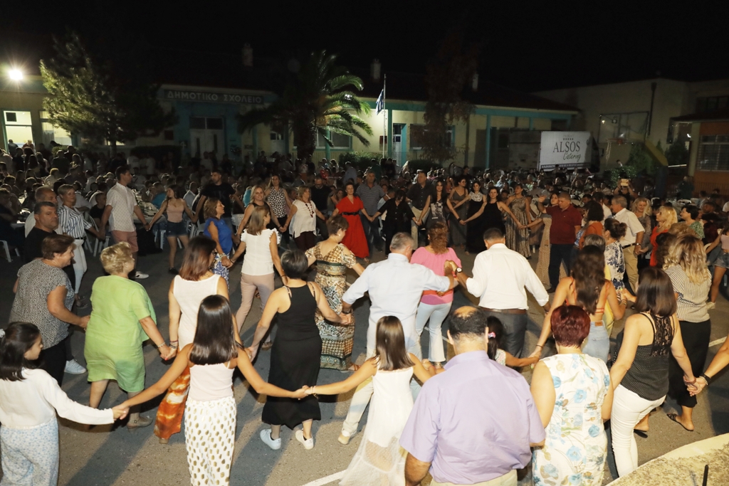 Οι εκατοντάδες πολίτες που συμμετείχαν στο παραδοσιακό γλέντι έγιναν μια παρέα, όταν οι καλλιτέχνες ανέβηκαν στη σκηνή και άρχισαν να παίζουν μουσική! Το κέφι άναψε και μέχρι τις πρώτες πρωινές ώρες μικροί και μεγάλοι διασκέδασαν και χόρεψαν με τα Χάλκινα.
