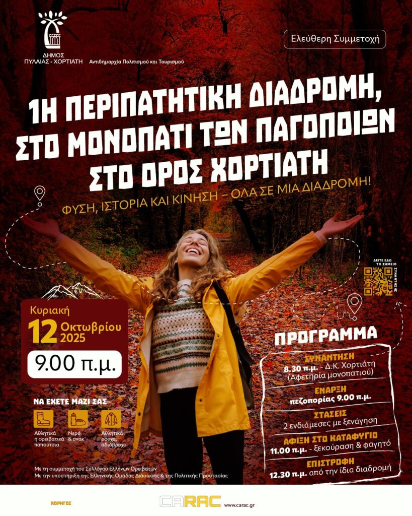 Την πρώτη περιπατητική διαδρομή στο Μονοπάτι των Παγοποιών θα πραγματοποιήσει την Κυριακή 12 Οκτωβρίου στις 09.00 το πρωί η Αντιδημαρχία Πολιτισμού και Τουρισμού του Δήμου Πυλαίας – Χορτιάτη εγκαινιάζει μια νέα δράση εξωστρέφειας και πολιτισμού στον Χορτιάτη.