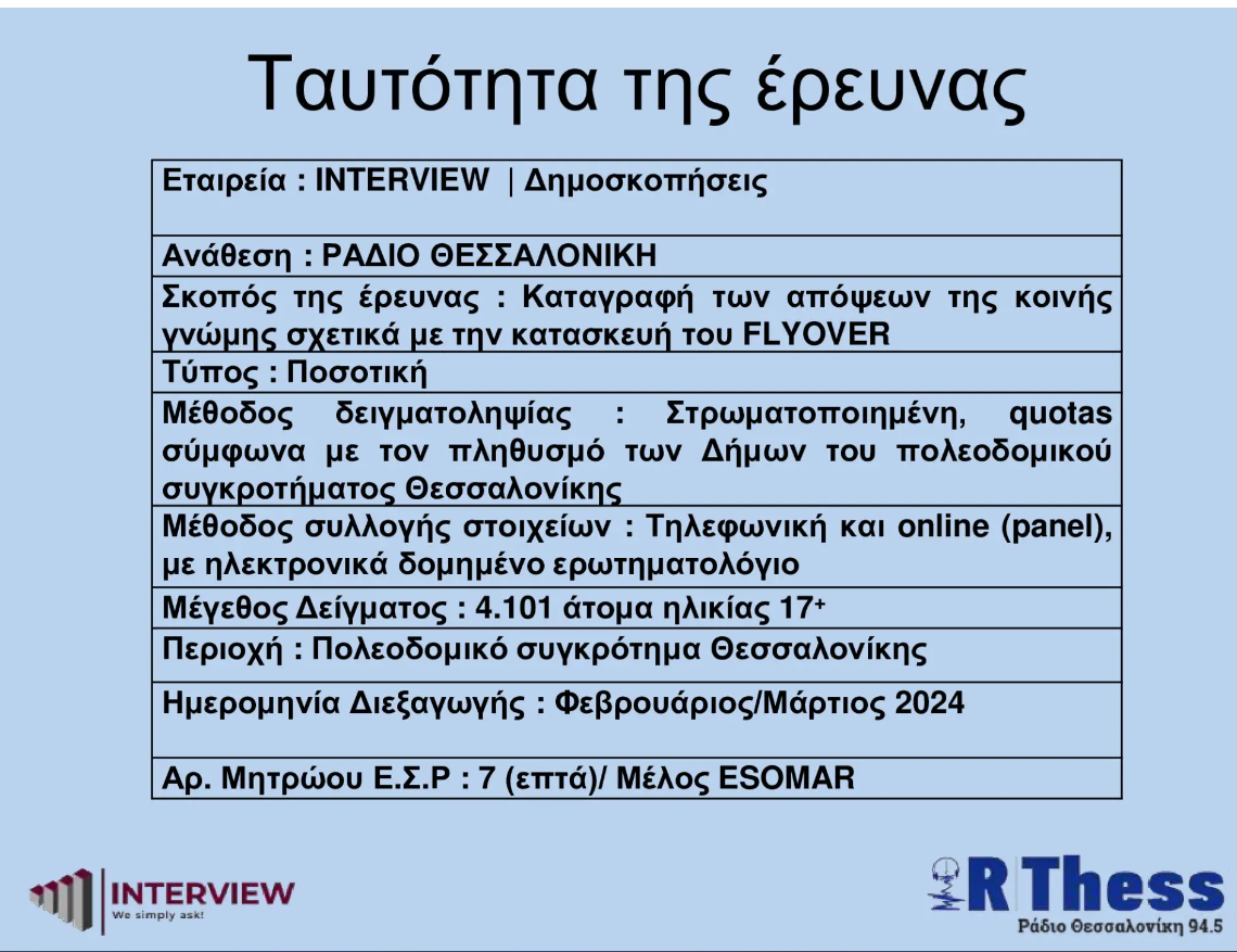Τα αποτελέσματα της έρευνας παρουσιάστηκαν στην ημερίδα διαλόγου, «Η ζωή μας με το Flyover», που διοργανώνει το Ράδιο Θεσσαλονίκη.