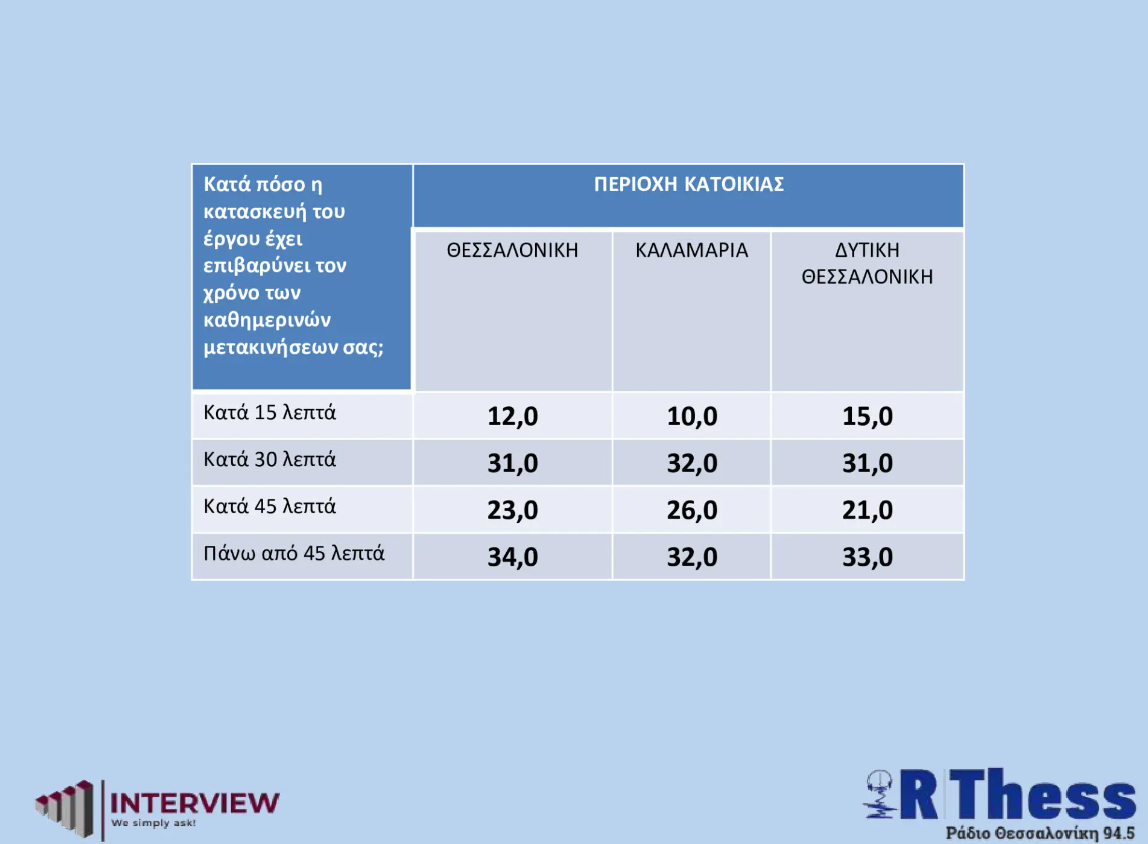 Σε δημοσκόπηση που πραγματοποίησε η εταιρεία  Interview για λογαριασμό του Ράδιο Θεσσαλονίκη 94.5 καταγράφεται η αντίθεση και η απαισιοδοξία των πολιτών για το έργο.