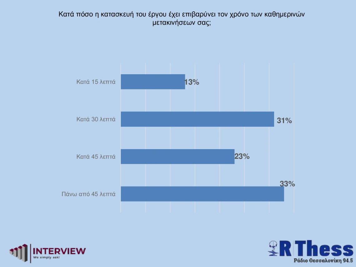 Οι περισσότεροι συμμετέχοντες τονίζουν  έχουν υποστεί επιβάρυνση του χρόνου των καθημερινών μετακινήσεων τους πάνω από 45 λεπτά ημερησίως.