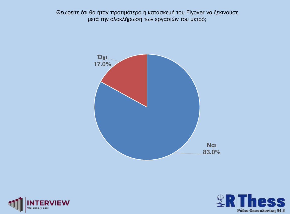 Παράλληλα, το 83% απαντούν πως το έργο του Flyover έπρεπε να ξεκινήσει μετά την ολοκλήρωση του Μετρό.