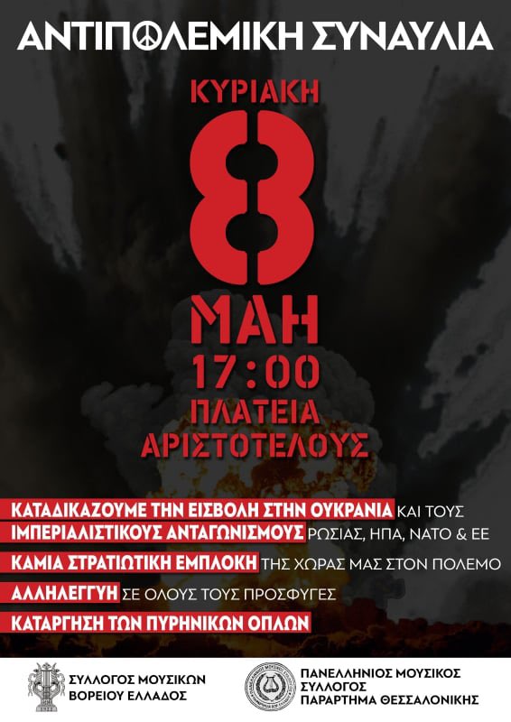 «Τα ονόματα που έχουν διαρρεύσει σχετικά με την συμμετοχή στην αντιπολεμική συναυλία, αφορούν επαφές και προσπάθεια συνεννόησης. Η τελική λίστα των συμμετοχών θα ανακοινωθεί παραμονές της εκδήλωσης. Ότι έχει διαρρεύσει αποτελεί πρωτοβουλία των συντακτών των άρθρων και όχι επίσημη ανακοίνωση των διοργανωτών. Πρόθεσή μας να ενώσουμε όλον τον καλλιτεχνικό κόσμο στην εκδήλωση. Όπως όλοι καταλαβαίνουμε ΣΥΓΚΕΝΤΡΩΝΟΥΜΕ ΠΡΟΘΕΣΕΙΣ. Επίσημα ως διοργανωτές δεν έχουμε ανακοινώσει κανένα όνομα. Έχουμε δρόμο ακόμη μπροστά μας για την τελική λίστα».