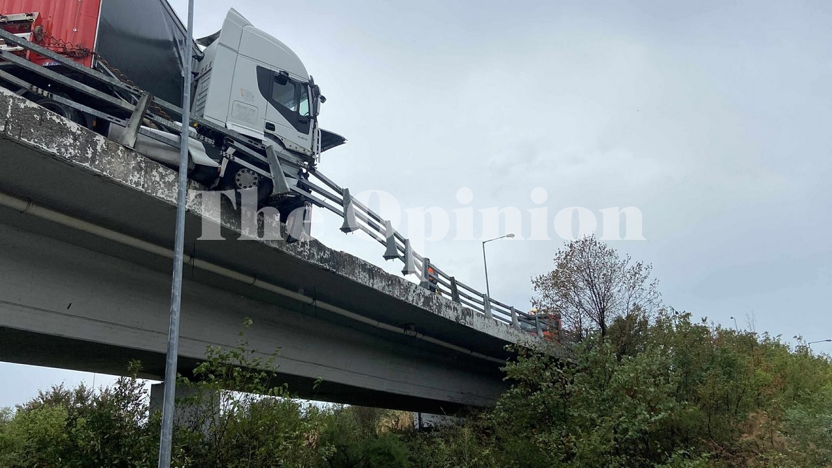 Εγνατία οδός: Εκτροπή νταλίκας στην ΠΑΘΕ – «Κρεμόταν» από την γέφυρα (ΦΩΤΟ-VIDEO)