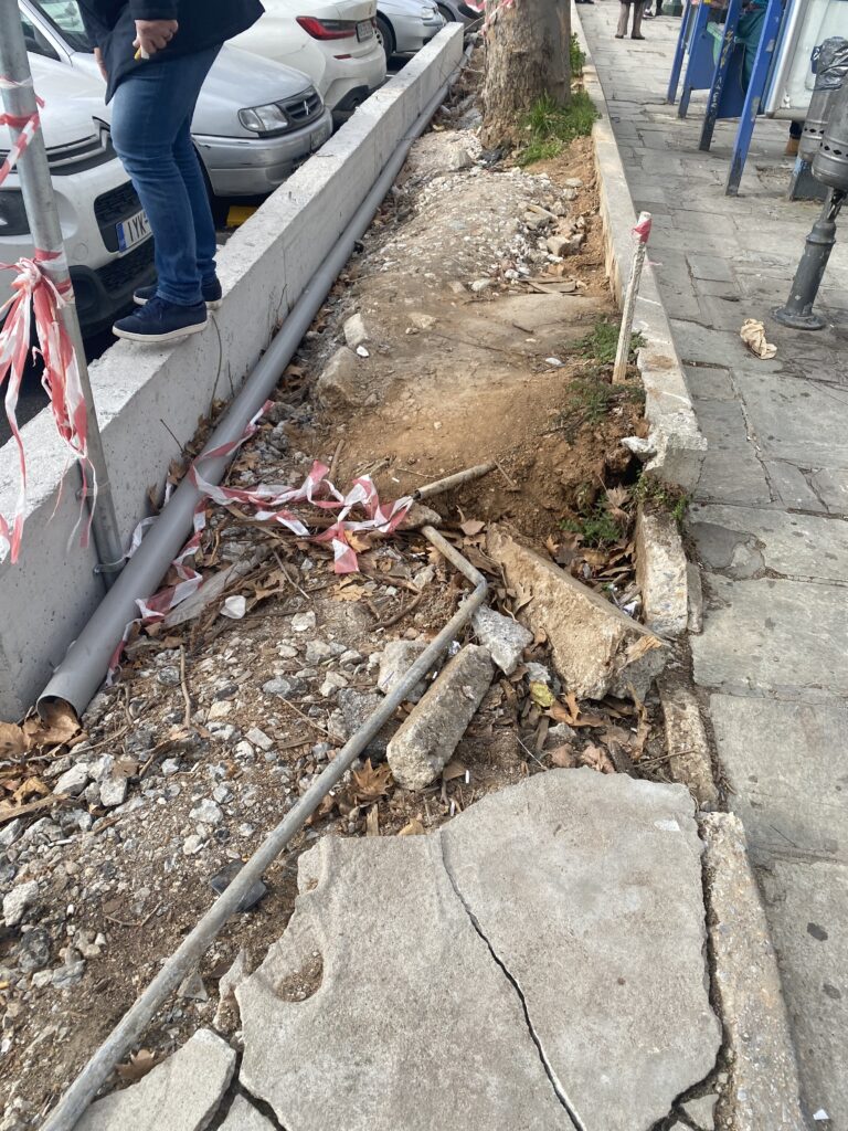 Χώματα, λακούβες, παρατημένα πλαστικά φρεάτια και τουμποράματα, συνθέτουν ένα σκηνικό που θέτει σε κίνδυνο την σωματική ακεραιότητα των πολιτών.