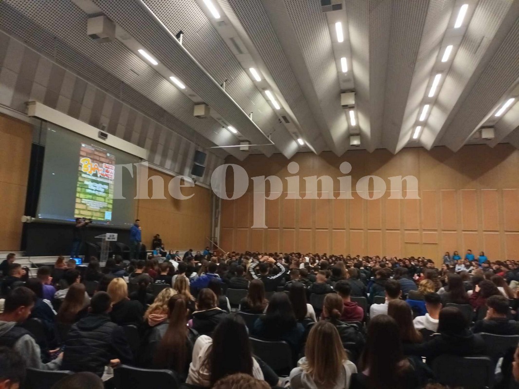 Στην κατάμεστη αίθουσα του Βελλιδείου, οι μαθητές λυκείου άκουσαν σύντομες παρεμβάσεις από επιστήμονες, εκπαιδευτικούς, αθλητές και καλλιτέχνες, αλλά παρακολούθησαν και βιντεοπροβολές από πρόσωπα δημοφιλή στα social media.
