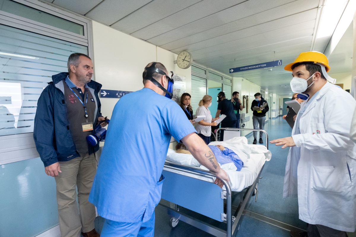 Η άσκηση περιλάμβανε την εκκένωση θαλάμου νοσηλείας του Χειρουργικού Τμήματος, καθώς και τη μεταφορά και διαχείριση ασθενών, μετά από την εκδήλωση φωτιάς. Σύμφωνα με το σενάριο, η φωτιά ξεσπάει όταν ασθενής, καθισμένος στο κρεβάτι του, ανάβει τσιγάρο και προσπαθεί να καλυφθεί με τα κλινοσκεπάσματα ώστε να μην γίνει αντιληπτός. Από την ανάφλεξη πιάνουν φωτιά τα κλινοσκεπάσματα και τα ρούχα του ασθενή, στον οποίο χορηγείται οξυγόνο με ρινική συσκευή. Ένας δεύτερος ασθενής χρησιμοποιεί την κουβέρτα του για να σβήσει τη φωτιά, η οποία ωστόσο μεταφέρεται.