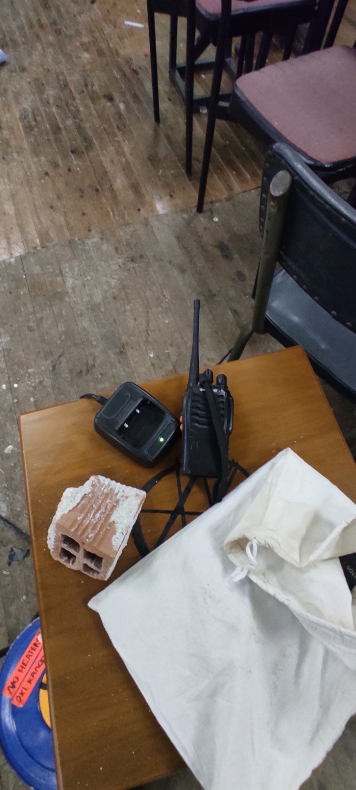 - Πλήθος τούβλων – πετρών και 3 πυροσβεστήρες που χρησιμοποιήθηκαν – εκκενώθηκαν, κατά περίπτωση, εναντίον των αστυνομικών δυνάμεων.