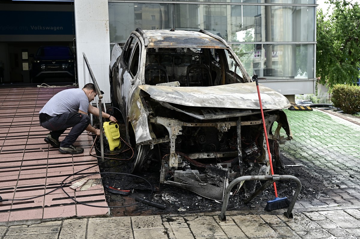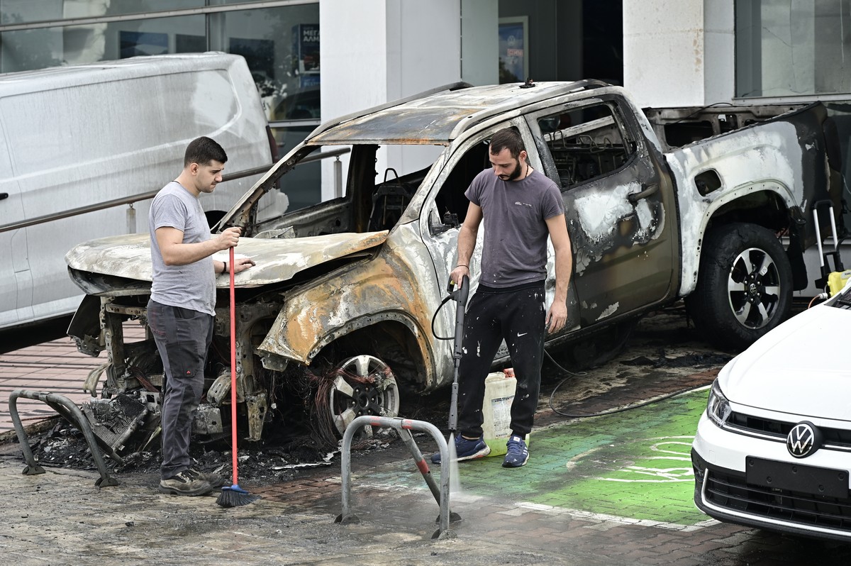 Ο ιδιοκτήτης της αντιπροσωπείας, μιλώντας στην κάμερα του ΕΡΤnews και στον ρεπόρτερ, Κώστα Στάμου, περιέγραψε: «Ήρθαν τρία άτομα. Οι δύο έβαλαν το εύφλεκτο υλικό και τη φωτιά και έφυγαν πεζοί. Φορούσαν μαύρες κουκούλες, μάσκες και μακριά μπουφάν».