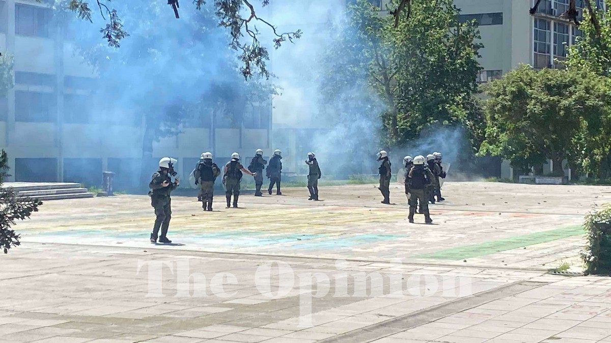 Στο προαύλιο των θετικών επιστημών έχει ξεσπάσει ισχυρή ένταση μεταξύ ατόμων του αντιεξουσιαστικού χώρου και των αστυνομικών δυνάμεων, αφού οι πρώτοι πετούν πέτρες προς τις αστυνομικές δυνάμεις ενώ φοιτητές που βρίσκονταν στα μαθήματά τους σπεύδουν να φύγουν από το κάμπους.