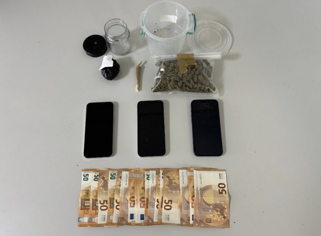 Συνολικά, από τις έρευνες της αστυνομίας κατασχέθηκαν 124 γραμμάρια ακατέργαστης κάνναβης, ένα αυτοσχέδιο τσιγάρο, τρία κινητά τηλέφωνα και το χρηματικό ποσό των 1.050 ευρώ.