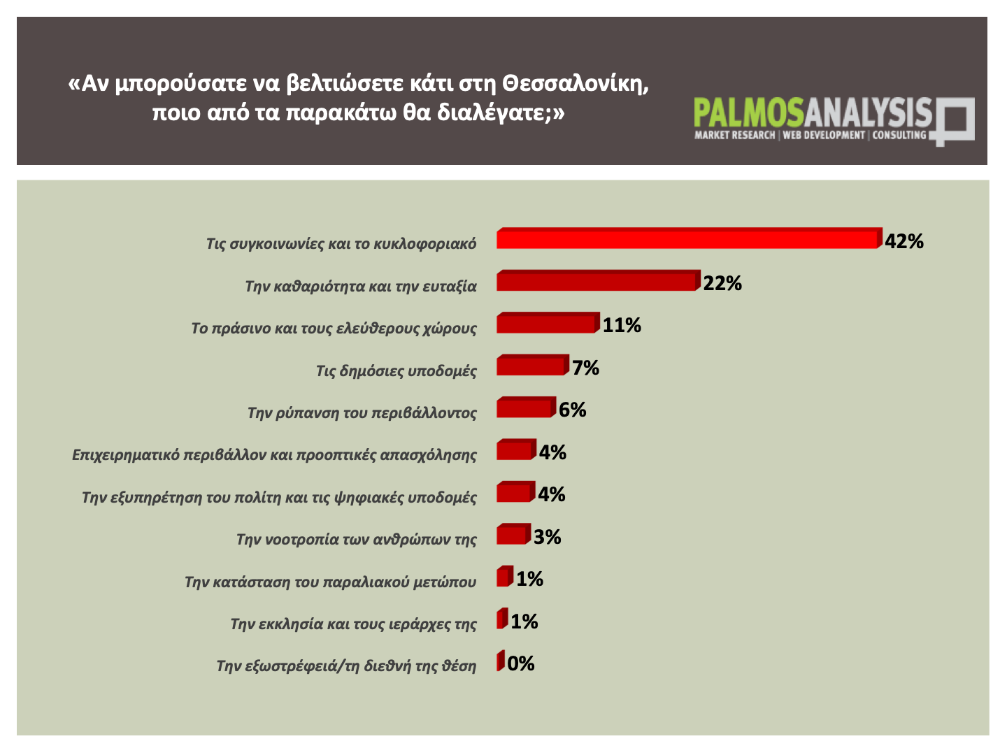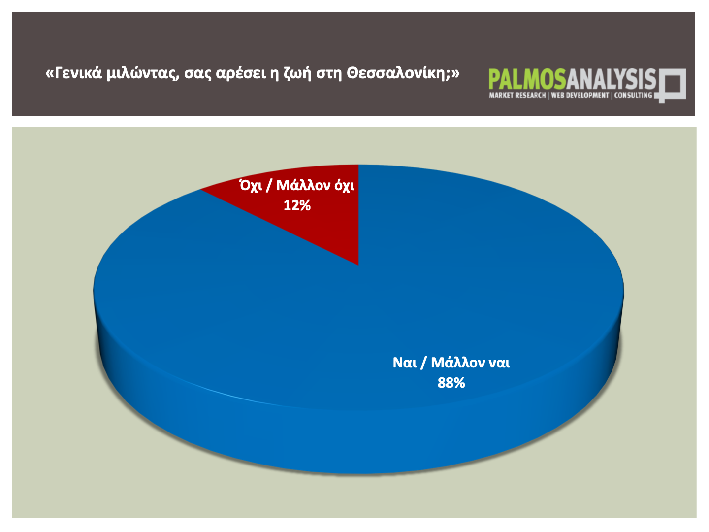 Η ζωή στη Θεσσαλονίκη αρέσει στους περισσότερους από τους ερωτώμενους, με κύριο πρόβλημα να παραμένει το κυκλοφοριακό και οι συγκοινωνίες.
