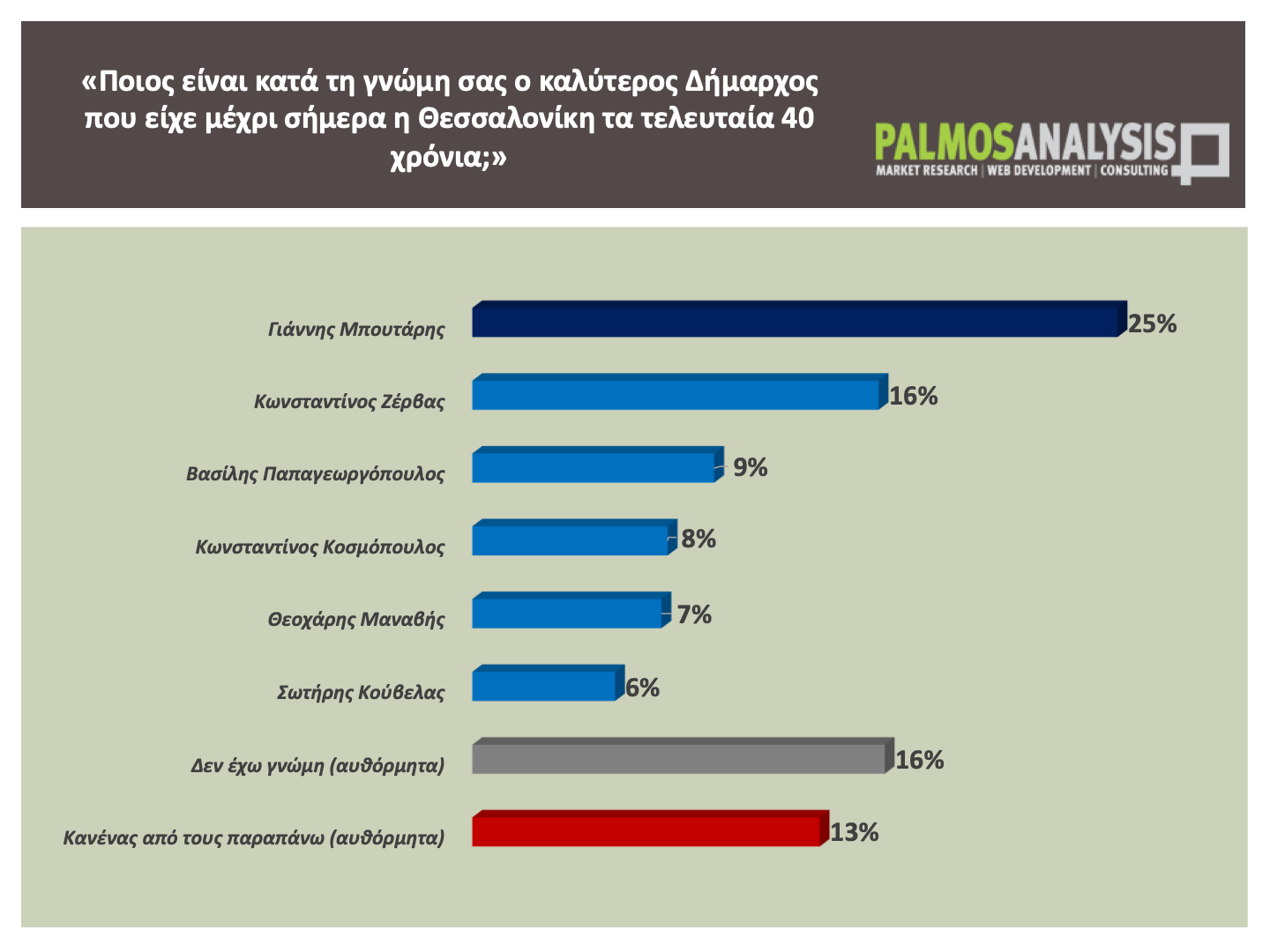 Καλύτερος δήμαρχος για τα τελευταία 40 χρόνια κρίθηκε ο Γιάννης Μπουτάρης με Ζέρβα και Παπαγεωργόπουλο να ακολουθούν.