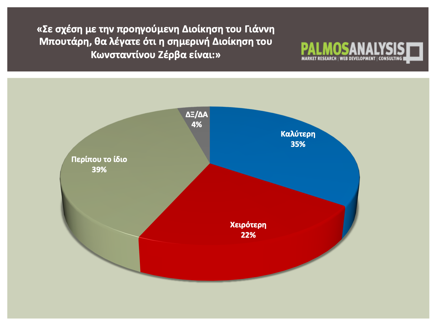 Η διοίκηση Ζέρβα συγκεντρώνει καλύτερο ποσοστό από αυτή του Γιάννη Μπουτάρη, ωστόσο μεγάλη μερίδα των συμμετεχόντων θέλουν να αλλάξει δήμαρχος το 2023.
