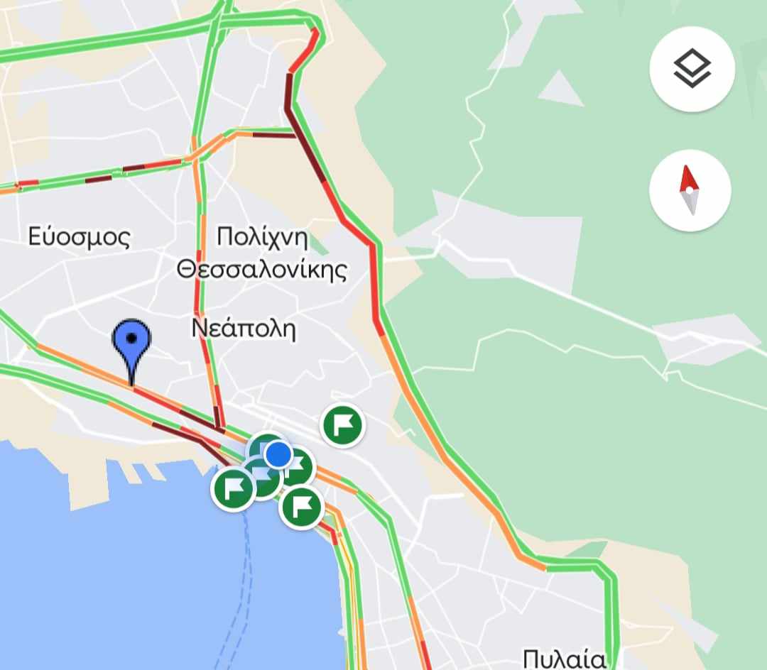 Μεγάλες καθυστερήσεις καταγράφονται στο ύψος του ΤΙΤΑΝ μέχρι και το Νοσοκομείο Παπαγεωργίου, στην Περιφερειακή Οδός από κόμβο Ωραιοκάστρου έως κόμβο Ευκαρπίας και από κόμβο Λαχαναγοράς ως κόμβο Συμμαχικής Οδού. Επίσης, Εγνατία, Λεωφορό Νίκης και Τσιμισκή τα οχήματα σχηματίζουν ουρές.
