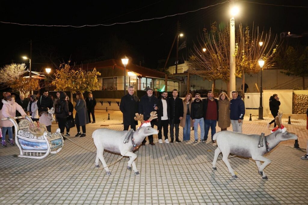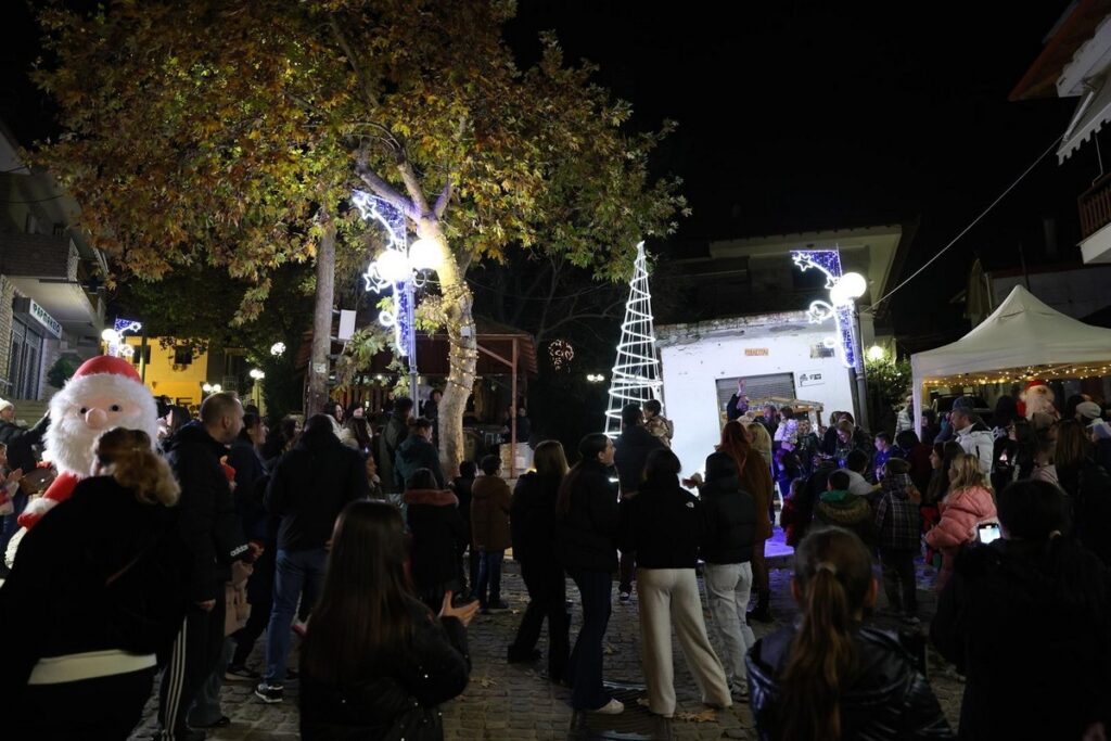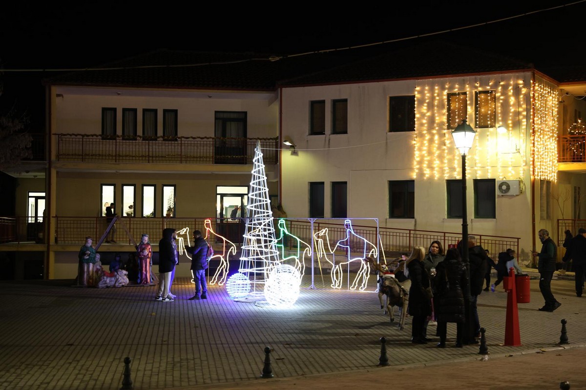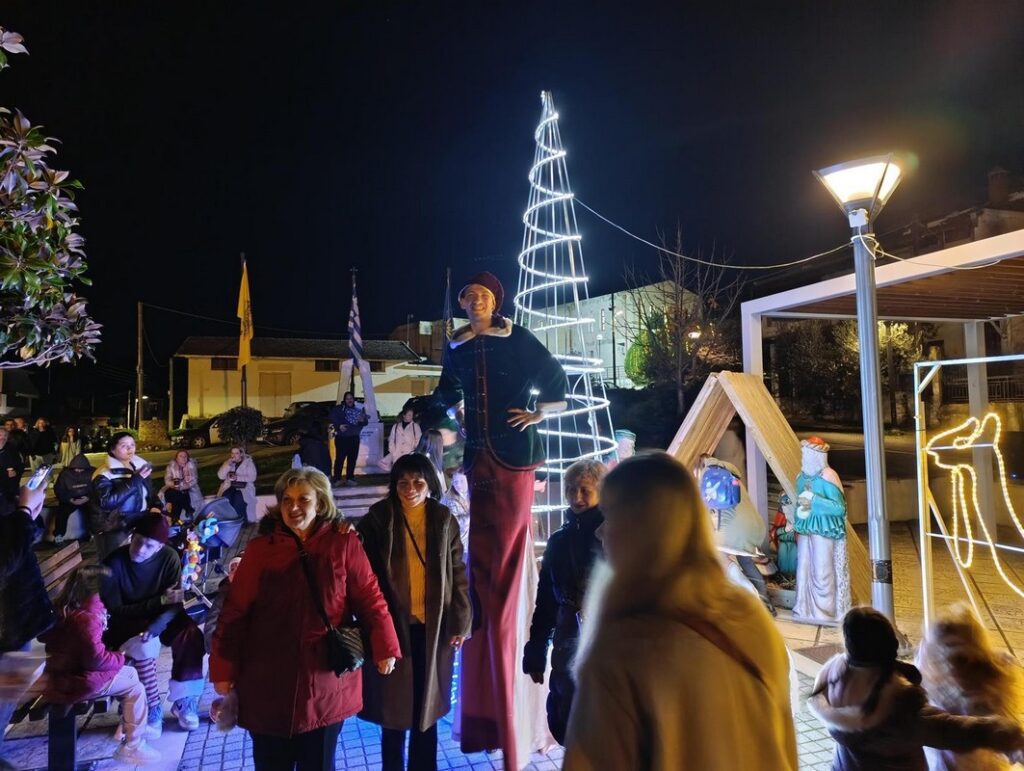 Η φωταγώγηση του χριστουγεννιάτικου δέντρου έγινε στην πλατεία του χωριού, όπου τα παιδιά έπαιξαν με τον Άγιο Βασίλη και τα ξωτικά του.