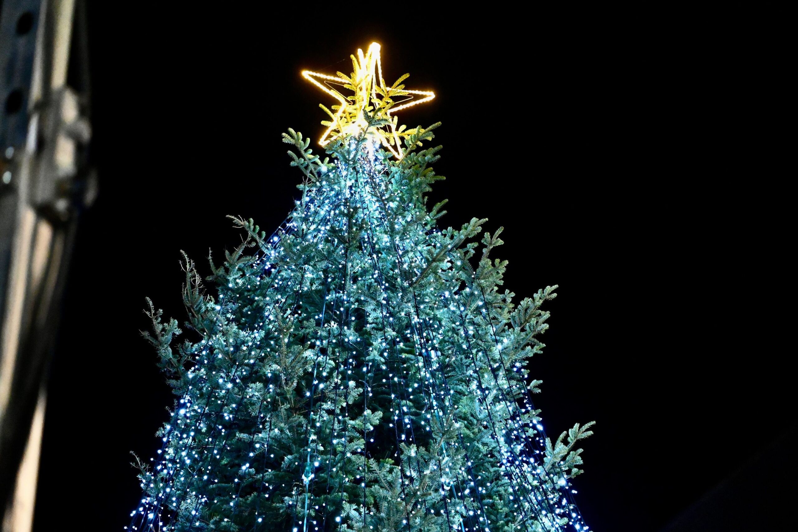 Το χριστουγεννιάτικο δέντρο, ύψους 11 μέτρων στολίστηκε με 10.000 λαμπάκια.