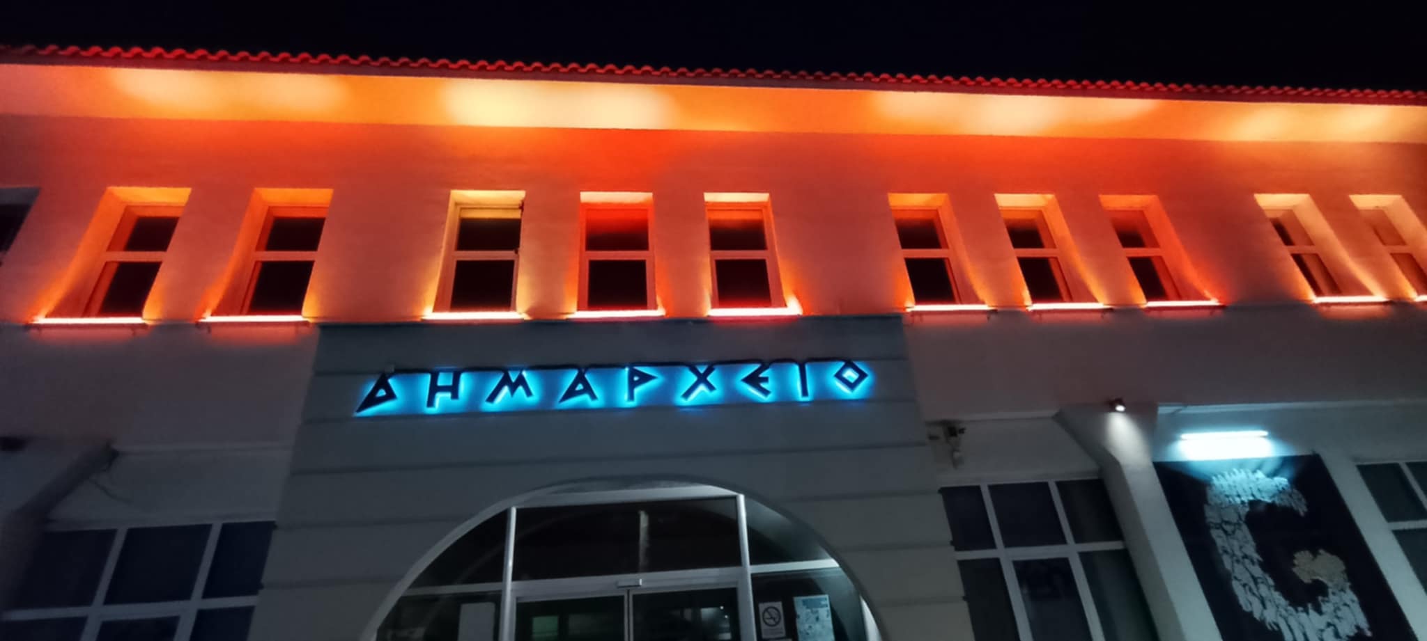 Φωτίστηκε με πορτοκαλί χρώμα το Δημαρχείο Ωραιοκάστρου για την Παγκόσμια Ημέρα Σκλήρυνσης κατά Πλάκας (ΦΩΤΟ)