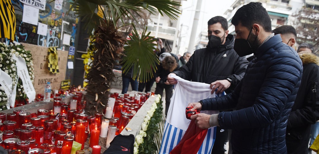 Εκπρόσωποι των τεσσάρων ομάδων της Θεσσαλονίκης(ΠΑΟΚ, Άρη, Ηρακλή, Απόλλωνα Πόντου) βρέθηκαν στο σημείο που δολοφονήθηκε ο 19χρονος Άλκης Καμπανός.