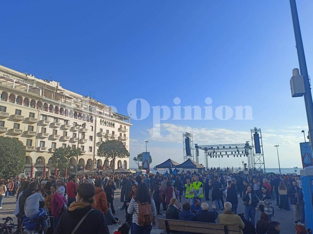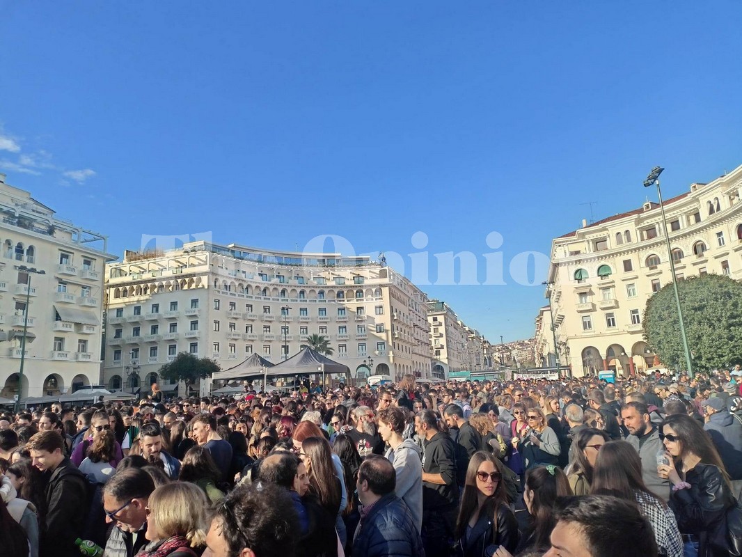 Από νωρίς το απόγευμα, η κεντρικότερη πλατεία της πόλης έχει γεμίσει, με τους Θεσσαλονικείς να στέλνουν ισχυρό μήνυμα υπέρ του δημόσιου αγαθού.