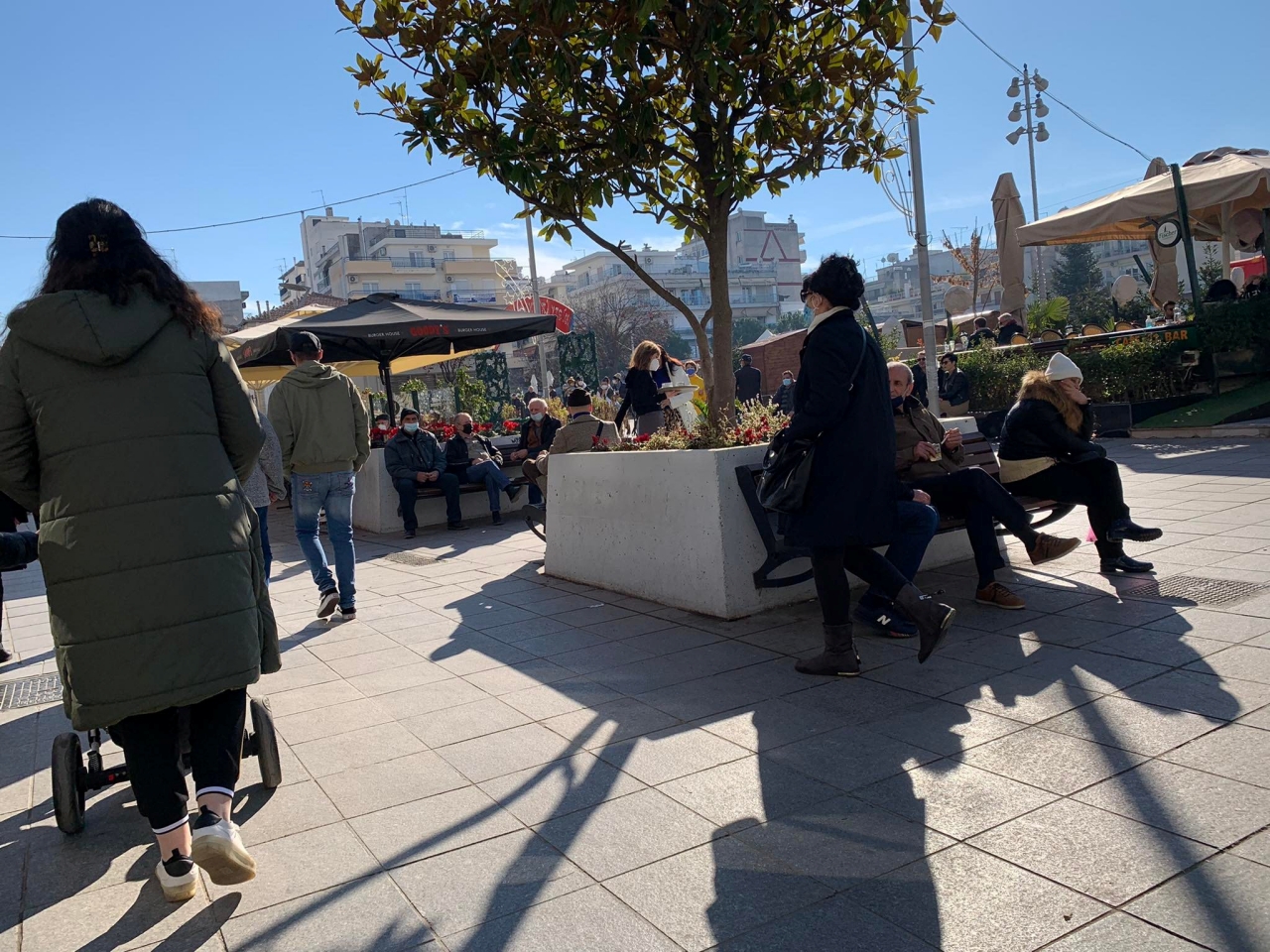 Στην πλατεία του δημαρχείου, άλλωστε παραμένει ο Χριστουγεννιάτικος στολισμός, με αρκετούς γονείς ή παππούδες να βρίσκουν ευκαιρία για βόλτα με μικρά παιδιά, τα οποία βρίσκονται σε διακοπές έως και τις 10 Ιανουαρίου που αναμένεται να ανοίξουν τα σχολεία.