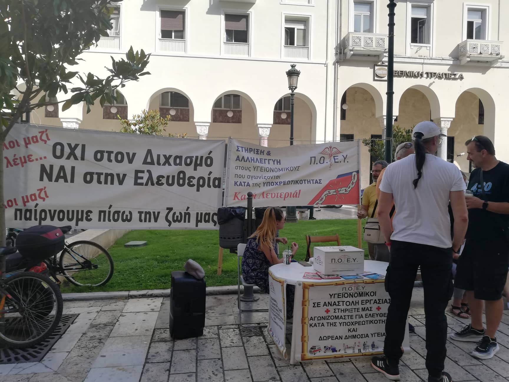 Οι υγειονομικοί της ΕΝΙΘ, συμμετέχουν στη στάση εργασίας που κήρυξε η ΟΕΝΓΕ πανελλαδικά σήμερα Τετάρτη 22/06 από τις 08:00-12:00, ενώ πραγματοποίησαν και κινητοποίηση έξω από τα γραφεία της 3ης και 4ης ΥΠΕ, στην Αριστοτέλους.