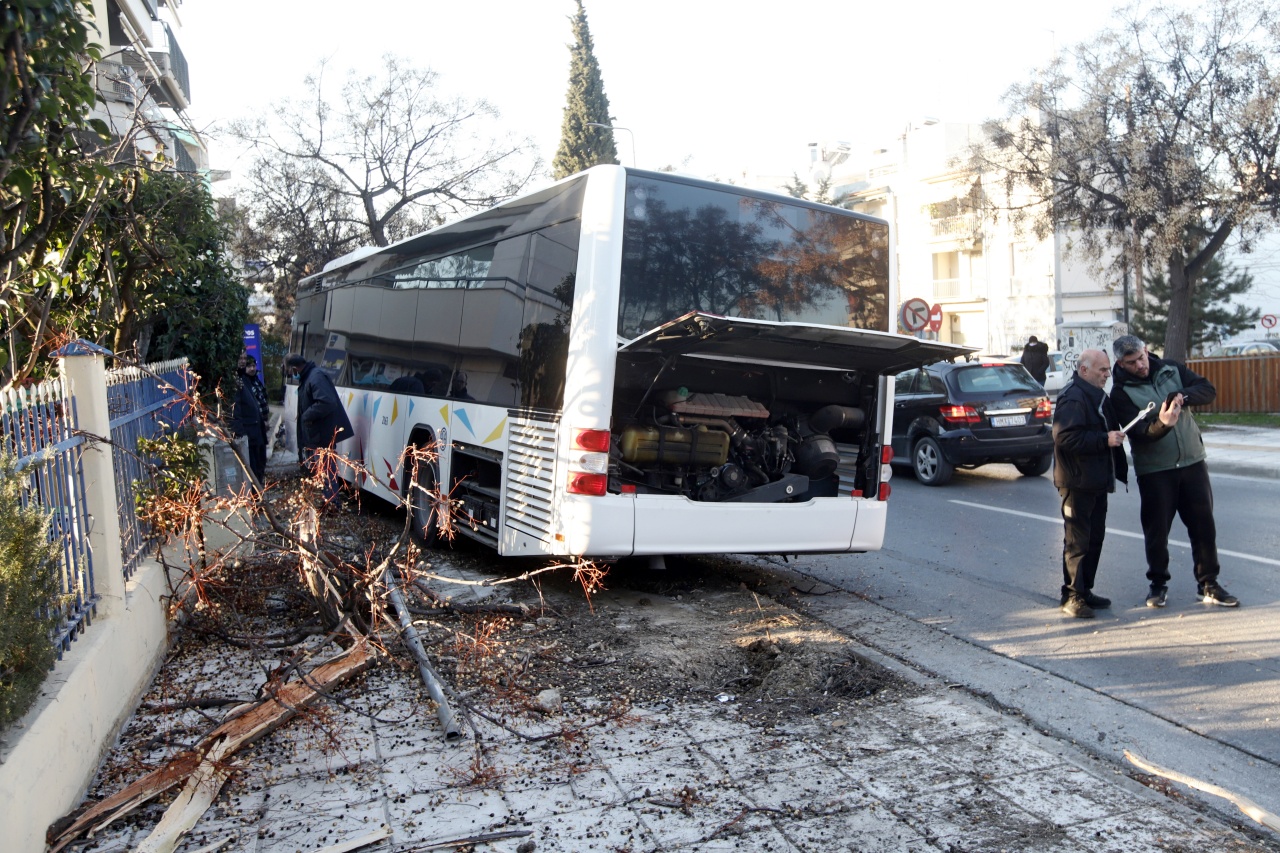 Ο οδηγός τραυματίστηκε, ωστόσο δεν είναι σοβαρά. Μέσα στο λεωφορείο υπήρχε κόσμος.