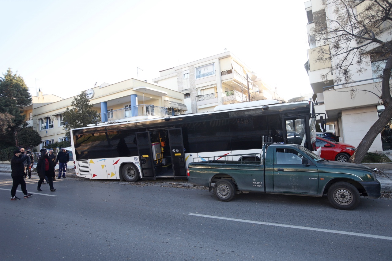 Λεωφορείο του ΟΑΣΘ στην Καλαμαριά, έπεσε σε κορμό και μετά σε στάση.