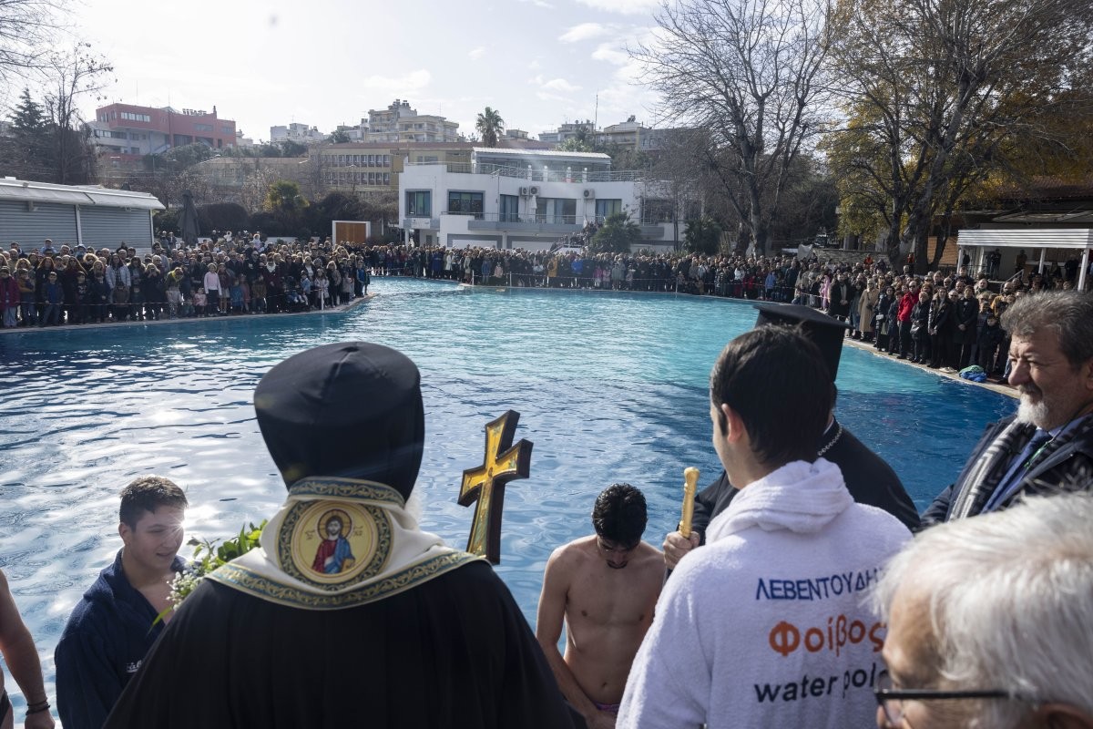 Στο κολυμβητήριο Συκεών τον σταυρό έπιασε η αθλήτρια του πόλο της ομάδας του Άρη και μαθήτρια της Β’ Λυκείου Αθανασία Χαραμαλή. Στη Νεάπολη με τον σταυρό στο χέρι βγήκε και φέτος, όπως και πέρυσι, από τα νερά ο αθλητής του πόλο στην ομάδα του Φοίβου, μαθητής του Πειραματικού Λυκείου Βασίλης Λεβεντούδης.