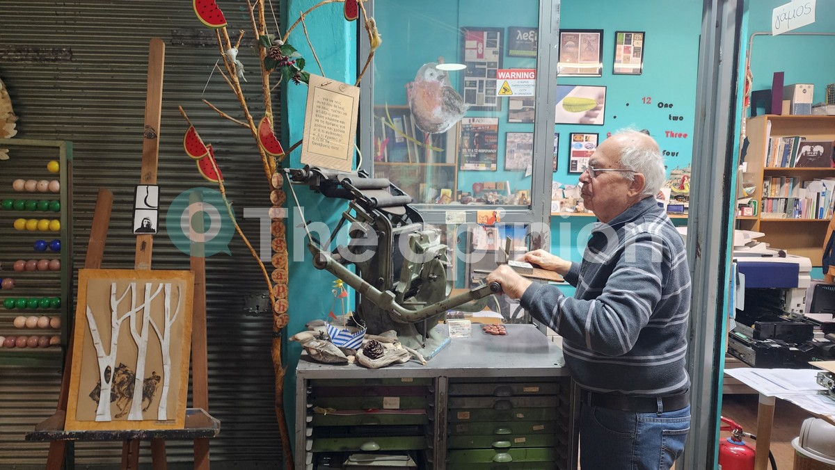 Κανείς όμως δεν θα μπορούσε να μας… ξεναγήσει καλύτερα από τον πιο παλιό «ένοικο» στο Μπεζεστένι, τον 82χρονο Αγάπιο Χατζηλάρη ο οποίος ζει επαγγελματικά στην Στοά από το 1959 και είναι ιδιοκτήτης σε ένα από τα παλαιότερα τυπογραφεία της Θεσσαλονίκης που αποτελεί ταυτόχρονα το «γηραιότερο» μαγαζί εντός του Μπεζεστενίου.