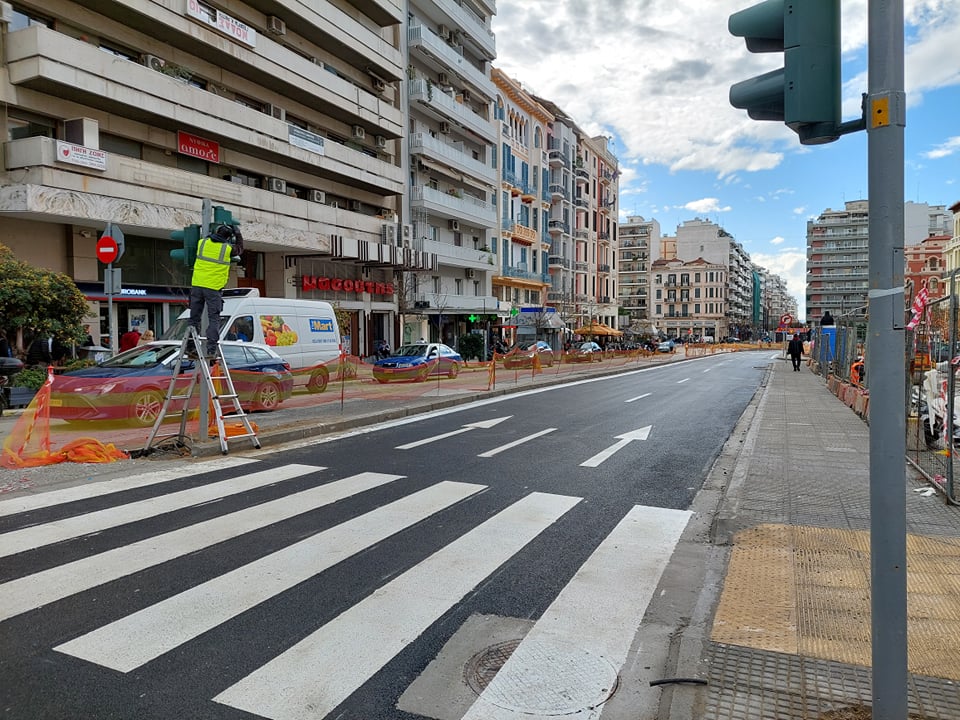 Νέα εικόνα απέκτησε από σήμερα η διασταύρωση της οδού Αγίας Σοφίας με Εγνατία, καθώς αφαιρέθηκαν οι λαμαρίνες του εργοταξίου του μετρό.