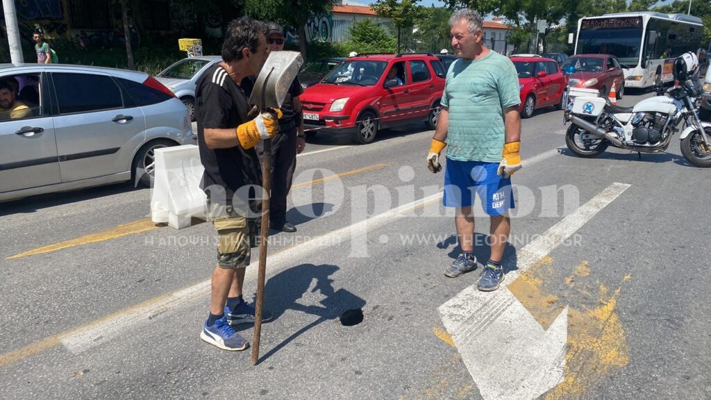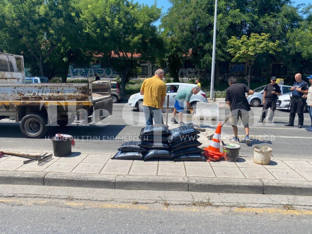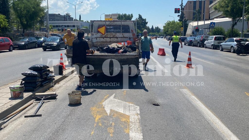 Άμεσα τα συνεργεία του δήμου Θεσσαλονίκης προέβησαν σε κλείσιμο της τρύπας με πίσσα και χαλίκι.