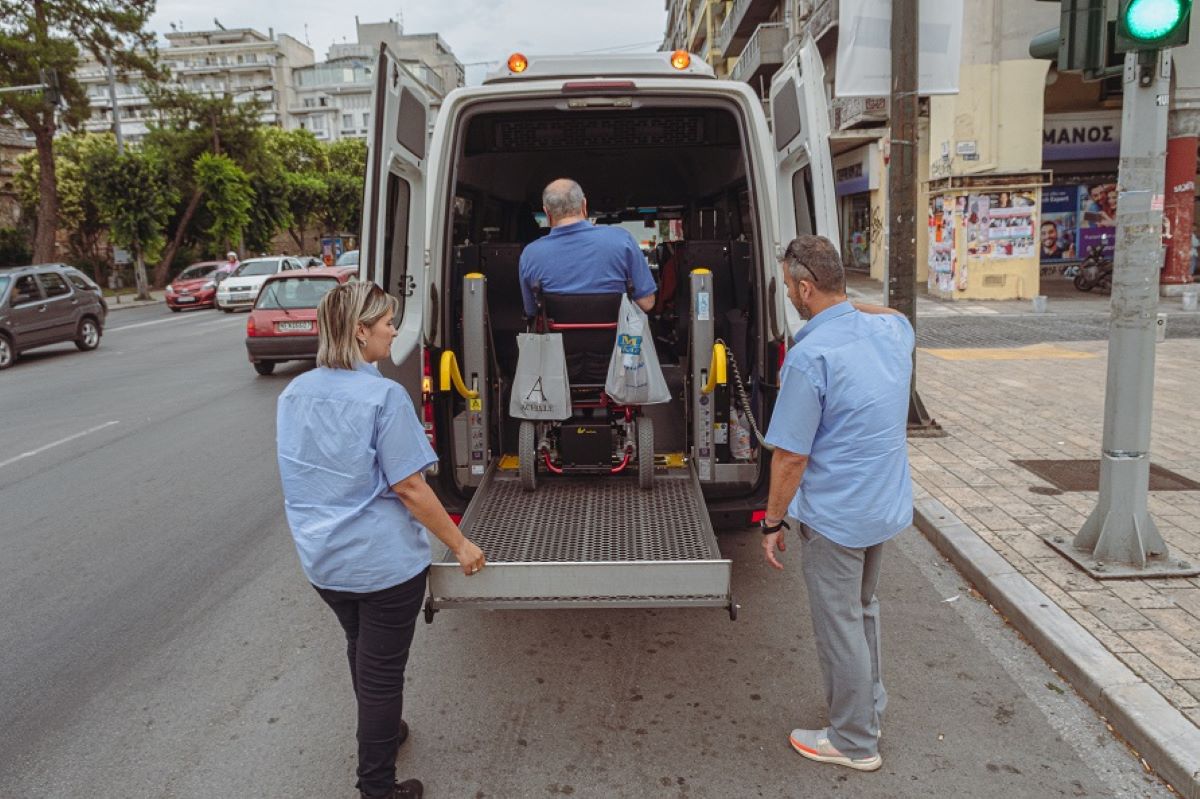 -Από το 2005 ήδη, μετακινεί δωρεάν τα άτομα με αναπηρίες, με ειδικά διασκευασμένα οχήματα. Η πρωτοποριακή υπηρεσία προσφέρεται στους χρήστες πόρτα – πόρτα. Αρκεί ένα τηλεφώνημα από τον ενδιαφερόμενο, ο οποίος κλείνει ραντεβού ώστε να τον παραλάβει το ειδικό όχημα από συγκεκριμένο σημείο, συγκεκριμένη ώρα, να τον οδηγήσει στο ακριβές σημείο που επιθυμεί και στη συνέχεια να τον επιστρέψει στο σημείο εκκίνησης.